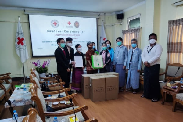 สภากาชาดไทยบริจาคเครื่องผลิตออกซิเจนแก่สภากาชาดเมียนมาเพื่อตอบโต้การแพร่ระบาดใหญ่ของโรคโควิด-19