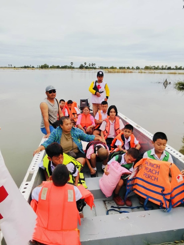 สภากาชาดไทย จัดเรือรับ-ส่ง เด็กนักเรียนและชาวบ้าน ที่เส้นทางถูกตัดขาดเพราะน้ำท่วม