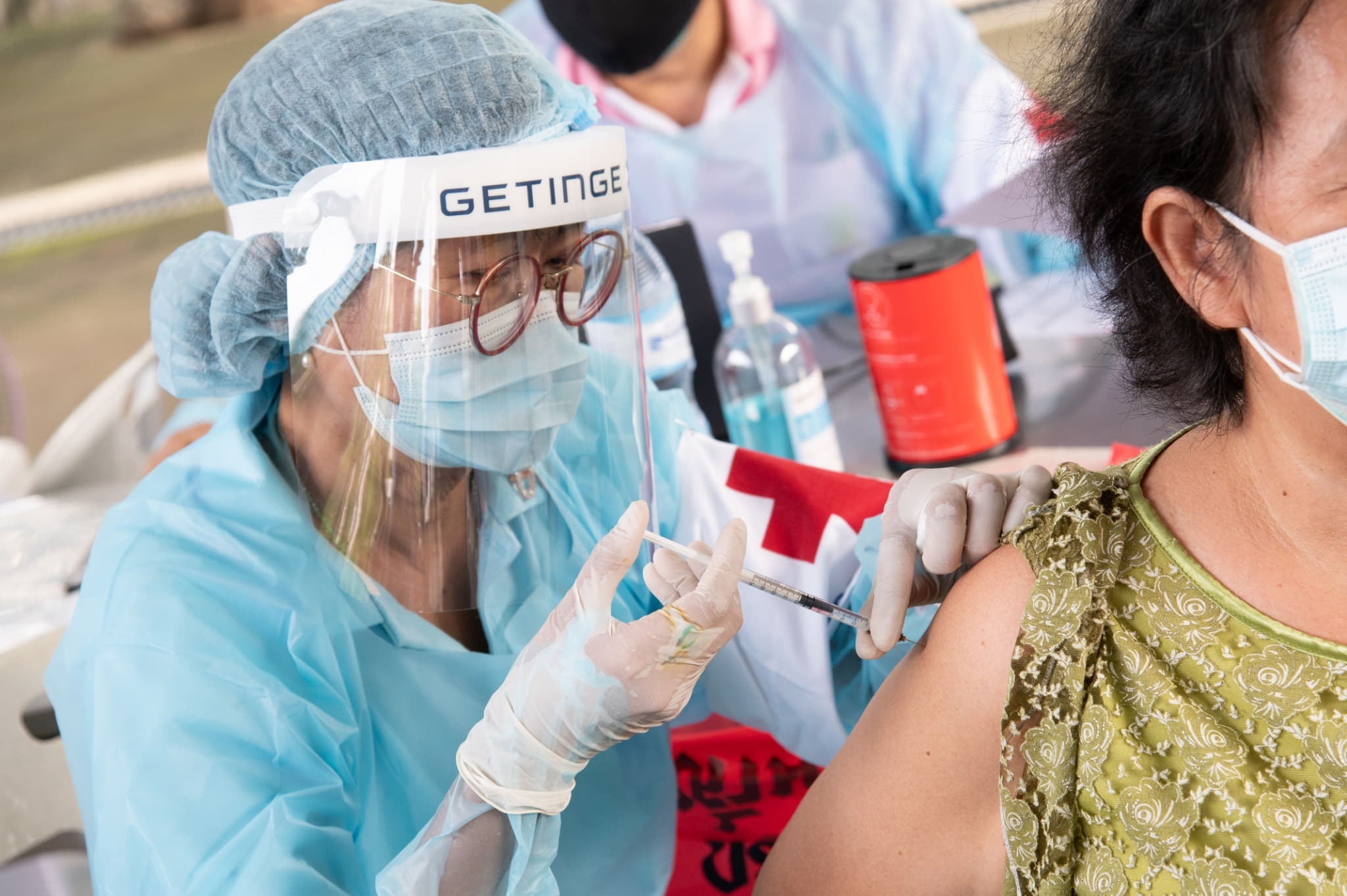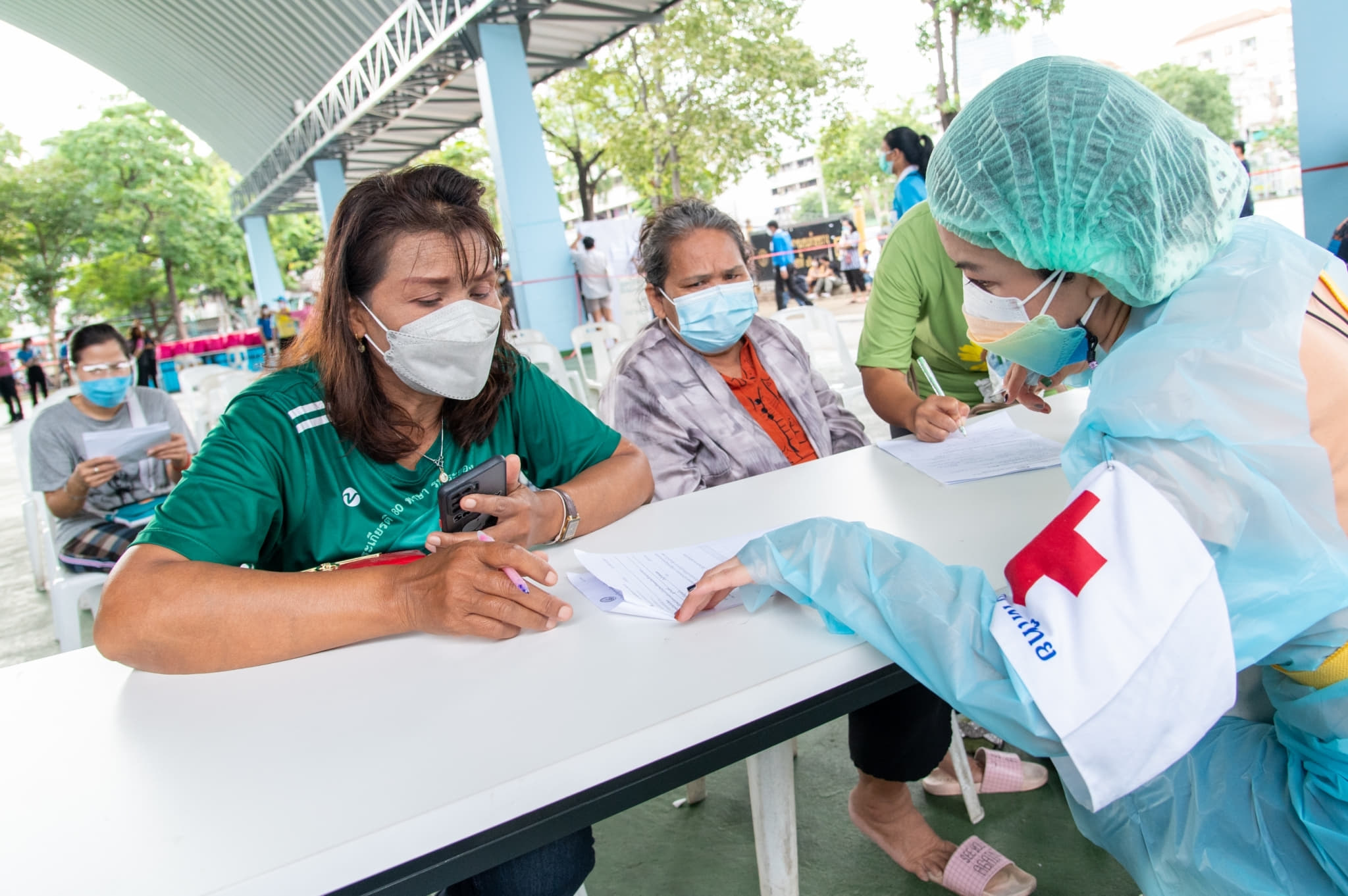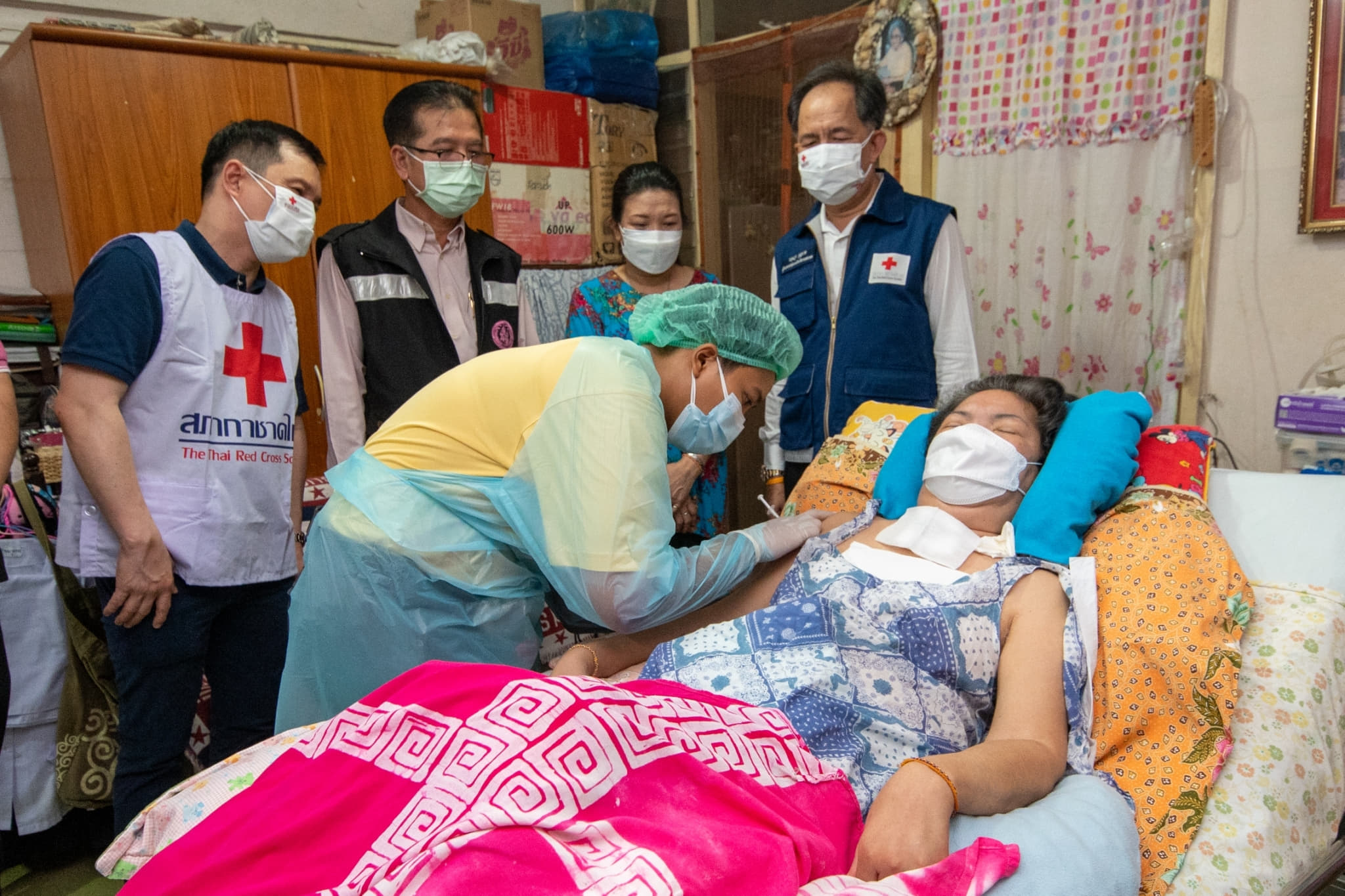 เมื่อวันที่ 24 กันยายน 2564 นายกฤษฎา บุญราช ผู้ช่วยเลขาธิการสภากาชาดไทย พร้อมด้วย นายแพทย์พิชิต ศิริวรรณ รองผู้อำนวยการสำนักงานบรรเทาทุกข์และประชานามัยพิทักษ์ สภากาชาดไทย ผู้ตรวจราชการกระทรวงการพัฒนาสังคมและความมั่นคงของมนุษย์ และผู้ว่าการเคหะแห่งชาติ ตรวจเยี่ยมการให้บริการฉีดวัคซีนป้องกันโรคโควิด-19 “ซิโนฟาร์ม” จากสภากาชาดจีน แก่ประชาชนที่อาศัยอยู่ในการเคหะแห่งชาติ ซึ่งมีรายได้น้อยและเป็นกลุ่มเปราะบาง ที่ยังเข้าไม่ถึงการฉีดวัคซีนของหน่วยงานใด ณ ลานกีฬาห้วยขวาง เขตดินแดง กรุงเทพมหานคร