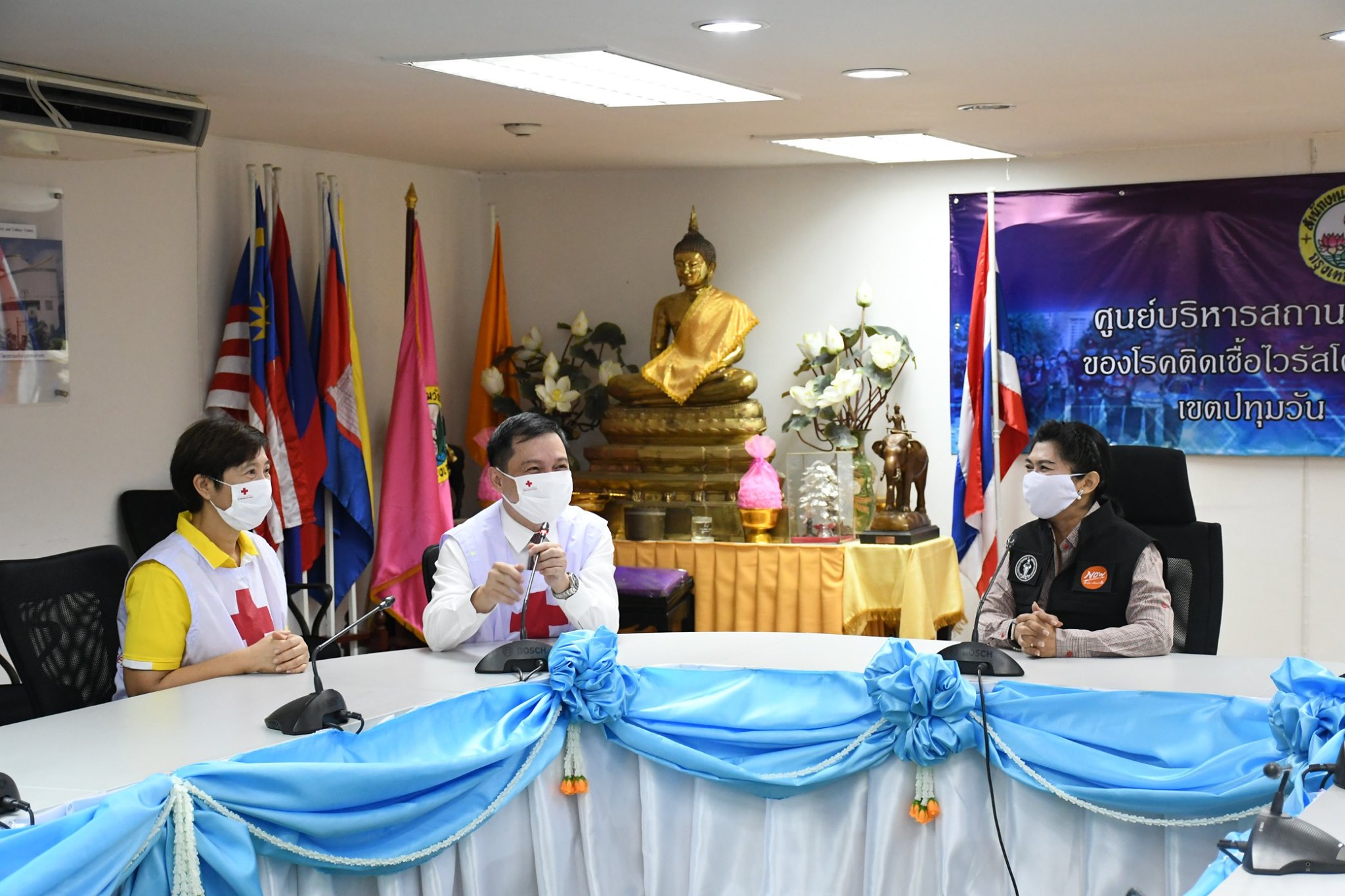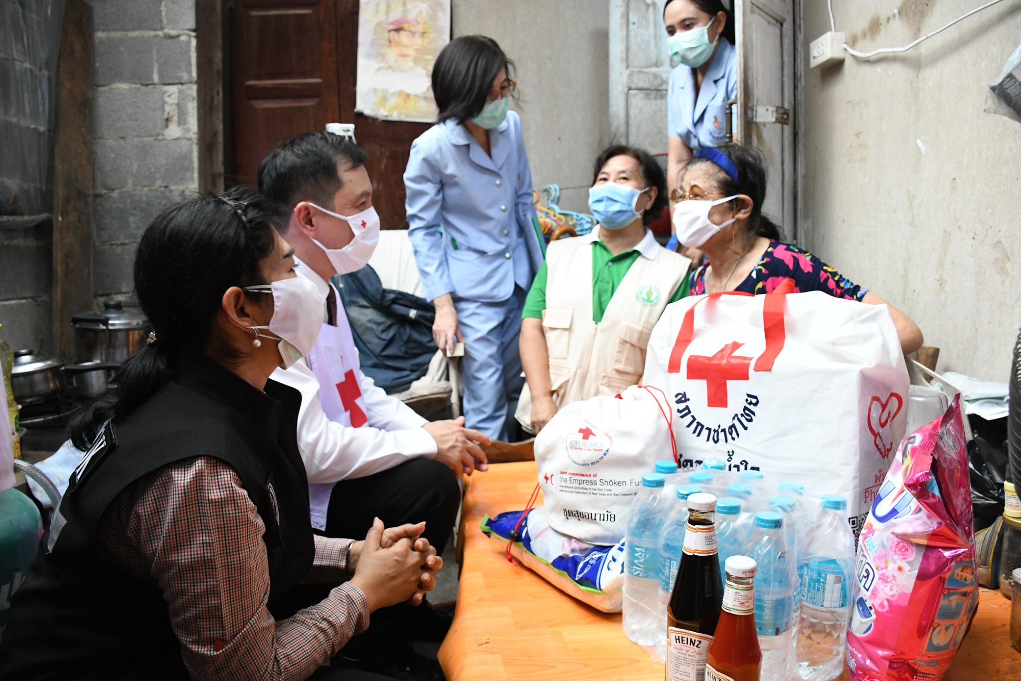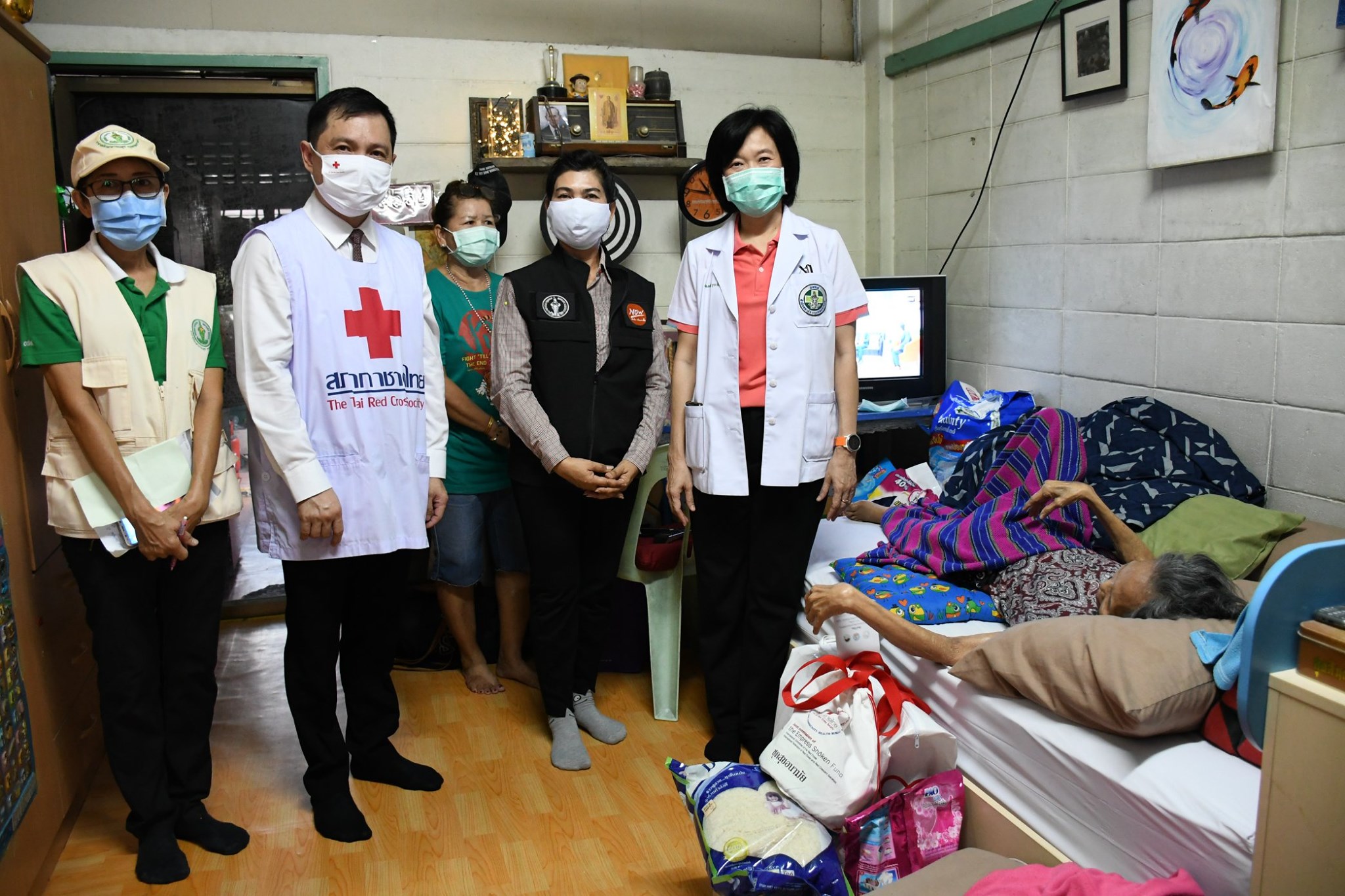 วันที่ 13 พฤษภาคม 2563 นายแพทย์พิชิต ศิริวรรณ รองผู้อำนวยการสำนักงานบรรเทาทุกข์และประชานามัยพิทักษ์ สภากาชาดไทย พร้อมด้วยนางมาศวัลย์ ปิ่นสุวรรณ ผู้อำนวยการเขตปทุมวัน พร้อมด้วย เจ้าหน้าที่สหพันธ์สภากาชาดและเสี้ยววงเดือนแดงระหว่างประเทศ (IFRC) ศูนย์บริการสาธารณสุข 16 ลุมพินี และเจ้าหน้าที่ที่เกี่ยวข้อง ลงพื้นที่นำชุดธารน้ำใจกู้ชีวิตฝ่าวิกฤตโควิด-19 พร้อมด้วยชุดสุขอนามัย และน้ำดื่ม จำนวน 21 ชุด ไปมอบให้แก่ผู้ป่วยติดเตียง ผู้สูงอายุ ผู้พิการด้อยโอกาส ในพื้นที่ 6 ชุมชน ของเขตปทุมวัน กรุงเทพฯ ได้แก่ ชุมชนพัฒนาบ่อนไก่ ชุมชนซอยกุหลาบแดง ชุมชนเคหะบ่อนไก่ ชุมชนโปโล ชุมชนร่วมฤดี และชุมชนพระเจน ที่ได้รับผลกระทบจากการระบาดของเชื้อไวรัสโคโรนาสายพันธุ์ใหม่ 2019 (COVID-19) เพื่อให้สามารถดำรงชีพได้ พร้อมมอบหน้ากากอนามัยแบบผ้า เพื่อช่วยลดการแพร่กระจายเชื้อและส่งเสริมการสวมหน้ากากอนามัยด้วย