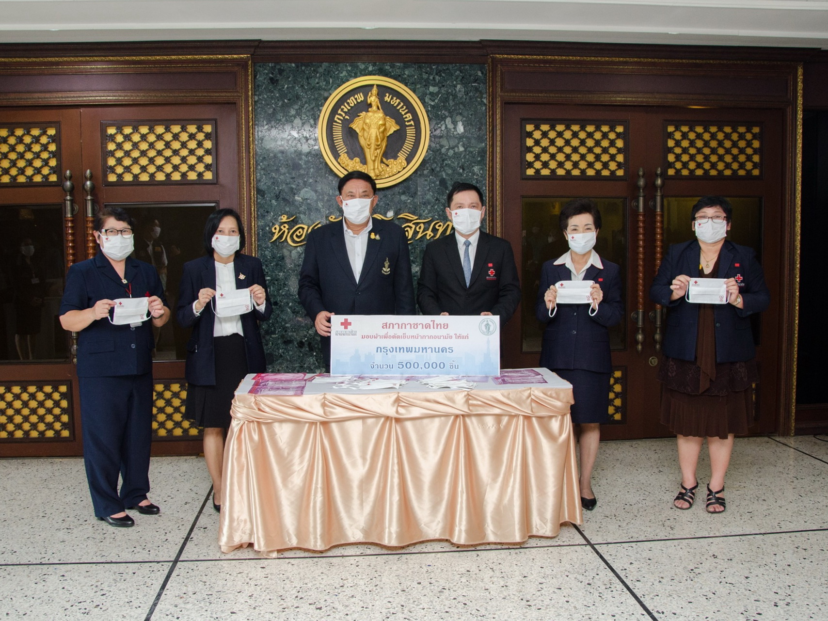 วันที่ 14 พฤษภาคม 2563 นายแพทย์พิชิต ศิริวรรณ รองผู้อำนวยการสำนักงานบรรเทาทุกข์และประชานามัยพิทักษ์ สภากาชาดไทย พร้อมคณะผู้บริหาร มอบหน้ากากอนามัยแบบผ้าในโครงการสภากาชาดไทย ร่วมใจป้องกันภัย COVID-19 ด้วยหน้ากากอนามัยแบบผ้า ให้แก่ พลตำรวจเอก อัศวิน ขวัญเมือง ผู้ว่าราชการกรุงเทพมหานคร จำนวน 5 แสนชิ้น เพื่อนำไปมอบให้กับผู้สูงอายุ ผู้ป่วยติดเตียง ผู้ด้อยโอกาส กลุ่มผู้มีอาชีพเสี่ยง รวมทั้ง อสส.กทม. และ อปพร กทม. ในพื้นที่ 50 เขตกรุงเทพมหานคร ณ ห้องรัตนโกสินทร์ ศาลาว่าการกรุงเทพมหานคร Categories: ข่าวประชาสัมพันธ์, ข่าวเด่น, สำนักงานบรรเทาทุกข์และประชานามัยพิทักษ์14/05/2020 Share this post Share on FacebookShare on Facebook Share on XShare on X ข่าวที่เกี่ยวข้องสภากาชาดไทย ถวายพระพร เนื่องในวันคล้ายวันพระราชสมภพ สมเด็จพระกนิษฐาธิราชเจ้า กรมสมเด็จพระเทพรัตนราชสุดา ฯ สยามบรมราชกุมารี อุปนายิกาผู้อำนวยการสภากาชาดไทย 2 เมษายน 256902/04/2026สมเด็จพระกนิษฐาธิราชเจ้า กรมสมเด็จพระเทพรัตนราชสุดาฯ สยามบรมราชกุมารีเสด็จพระราชดำเนินไปทรงเปิดงานและทรงเยี่ยมร้าน “งานออกร้านคณะภริยาทูต ครั้งที่ 59” ณ พารากอน ฮอลล์ ชั้น 5 ศูนย์การค้าสยามพารากอน27/02/2026สมเด็จพระกนิษฐาธิราชเจ้า กรมสมเด็จพระเทพรัตนราชสุดา ฯ สยามบรมราชกุมารี เสด็จฯ ทรงเปิดอาคารสำนักงานเหล่ากาชาดจังหวัดน่าน (หลังใหม่)10/02/2026สภากาชาดไทย ร่วมกับ กองทัพอากาศ จัดโครงการเฉลิมพระเกียรติ ฯ สำรวจประชาชนที่มีความเสี่ยงเป็น โรคพาร์กินสัน10/02/2026สภากาชาดไทย รวมพลังผู้บริหาร บุคลากร นักศึกษาพยาบาล และอาสาสมัครกาชาดกว่า 900 ชีวิต ร้อยรวมดวงใจ ถวายความอาลัยในพิธีบำเพ็ญกุศลสตมวาร (100 วัน) ถวายเป็นพระราชกุศลแด่สมเด็จพระนางเจ้าสิริกิติ์ พระบรมราชินีนาถ พระบรมราชชนนีพันปีหลวง สภานายิกาสภากาชาดไทย30/01/2026รัฐบาลไทยมอบเงินช่วยเหลือด้านมนุษยธรรมแก่ผู้ประสบภัยในยูเครน ผ่านสภากาชาดไทย23/01/2026