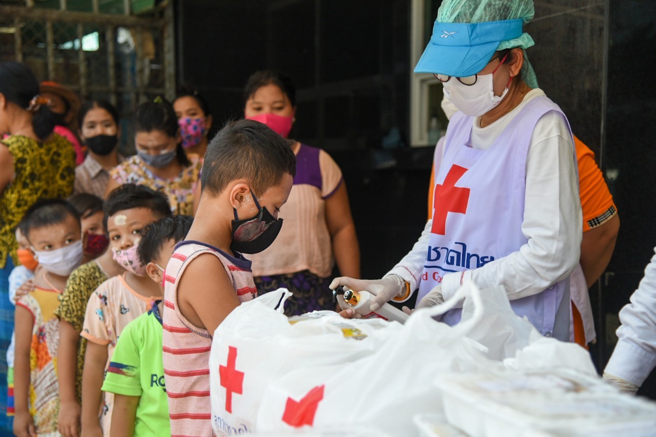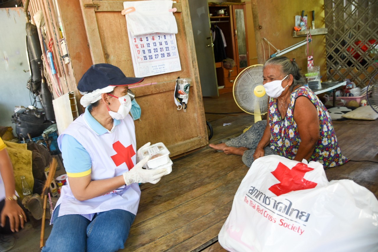 นับตั้งแต่เกิดการแพร่ระบาดของโรคโควิด-19 สภากาชาดไทยได้ดำเนินการให้ความช่วยเหลือประชาชนที่ได้รับความเดือดร้อนจากผลกระทบดังกล่าวมาโดยตลอด ทั้งด้านการแพทย์และสาธารณสุขที่ให้การดูแลรักษาผู้ป่วย ผู้ติดเชื้อ การบรรเทาทุกข์ผู้ได้รับผลกระทบทั้งในเรื่องของการเป็นผู้กักกันตนเอง หรือผู้ที่ได้รับผลกระทบจากสภาพเศรษฐกิจ โดยได้ประสานความร่วมมือกับเหล่ากาชาดจังหวัดทุกจังหวัดทั่วประเทศ ในการมอบชุดธารน้ำใจกู้ชีวิตฝ่าวิกฤต COVID-19 ไปแล้วกว่า 111,721 ชุด คิดเป็นมูลค่า 73,735,860 บาท (ข้อมูล ณ วันที่ 17 พ.ค.63) มอบหน้ากากอนามัยแบบผ้า 10 ล้านชิ้น สำหรับประชาชนใช้สวมป้องกันการแพร่กระจายเชื้อ และจัดตั้งครัวเคลื่อนที่ตามสถานีกาชาดต่าง ๆ เพื่อปรุงอาหารสุกใหม่สำหรับแจกจ่ายแก่ประชาชนเพื่อบรรเทาความเดือดร้อนในเบื้องต้น