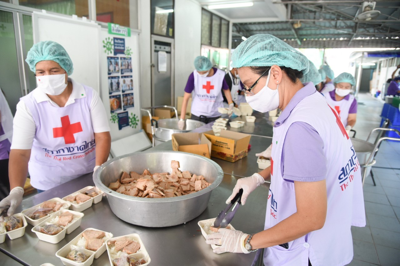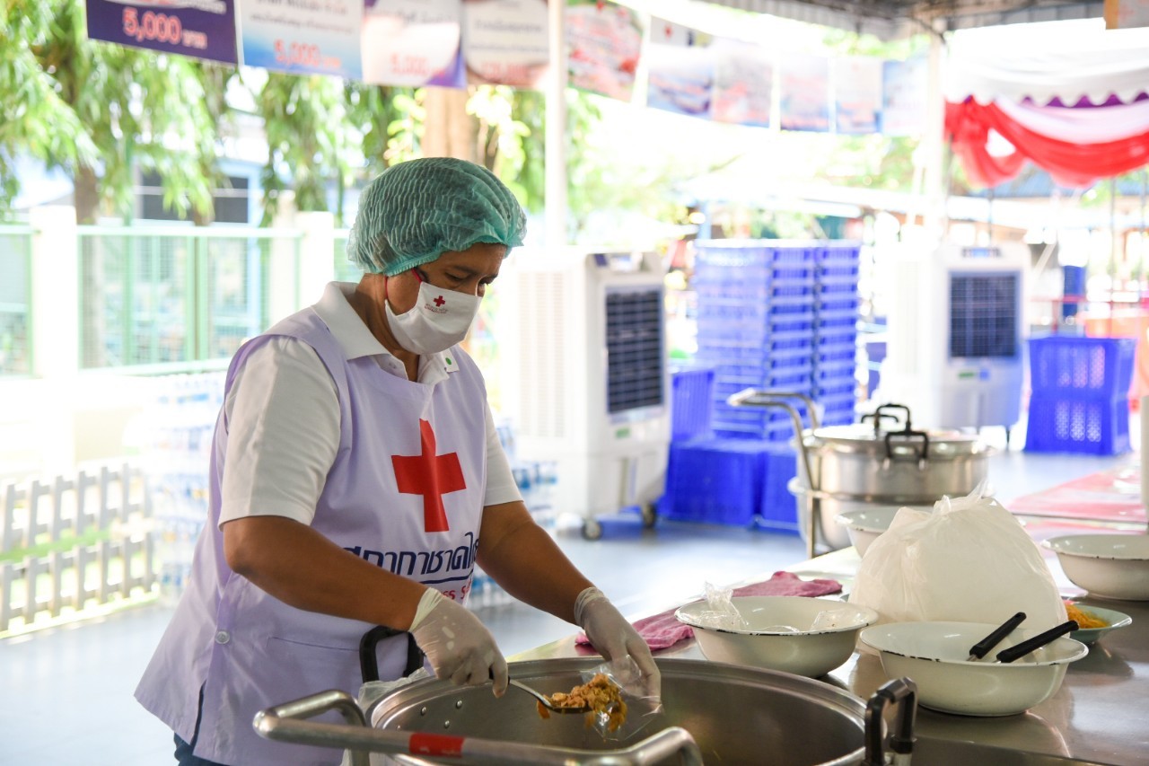 นางชุติพร วิจิตร์แสงศรี นายกเหล่ากาชาดจังหวัดสมุทรสาคร กล่าวว่า “ประชาชนในพื้นที่ส่วนใหญ่ประกอบอาชีพรับจ้างในโรงงานอุตสาหกรรม เนื่องจากจังหวัดสมุทรสาครมีโรงงานอุตสาหกรรมมากกว่า 7,000 โรงงาน ซึ่งได้รับผลกระทบจากการแพร่ระบาดของโรคโควิด-19 ส่งผลให้โรงงานหลายแห่งปิดตัวลง เศรษฐกิจย่ำแย่ และประชาชนได้รับความเดือดร้อนเป็นจำนวนมาก อาหารปรุงสุกจากครัวพระราชทาน อุปนายิกาผู้อำนวยการสภากาชาดไทย จะแจกจ่ายไปยังประชาชนในพื้นที่จังหวัดสมุทรสาคร โดยจะคำนึงถึงการเป็นต้นแบบที่ดีด้านการจัดการครัวที่เน้นความสะอาด ยึดหลักสุขาภิบาล ที่ได้มาตรฐาน มีเมนูอาหารที่สด สะอาด บุคลากรในครัวแต่งกายตามมาตรฐาน คือ สวมหมวกคลุมผม ใส่ผ้ากันเปื้อน สวมหน้ากากอนามัย และสวมถุงมือ รวมถึงการแจกจ่ายที่ดำเนินการจัดระเบียบการรักษาระยะห่างทางสังคม เพื่อป้องกันไม่ให้เกิดการแพร่ระบาดของโรคโควิด-19 ด้วย”
