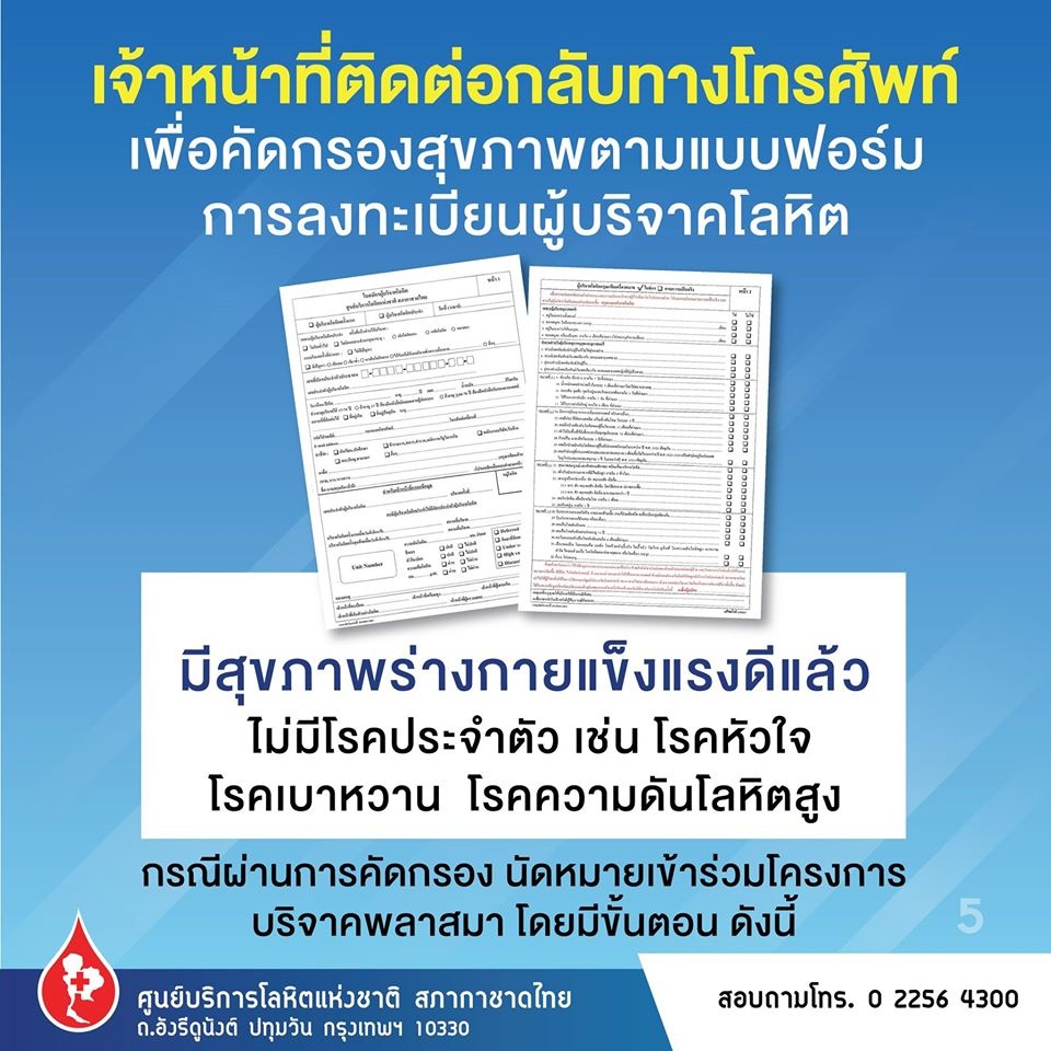 กรณีผ่านการคัดกรอง จะทำการนัดหมายเพื่อเข้าร่วมโครงการบริจาคพลาสมาฯ
