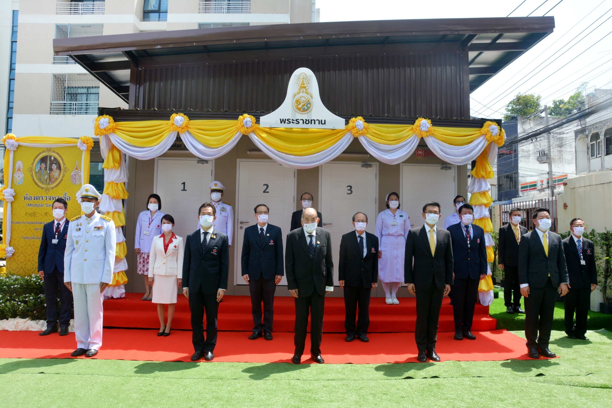 นายแผน วรรณเมธี เลขาธิการสภากาชาดไทย กล่าวว่า “พระบาทสมเด็จพระเจ้าอยู่หัว และสมเด็จพระนางเจ้าฯ พระบรมราชินี ทรงมีพระเมตตาต่อ บุคลากรทางการแพทย์ทุกคนของโรงพยาบาลสมเด็จพระบรมราชเทวี ณ ศรีราชา อย่างหาที่สุดมิได้ ทรงพระกรุณาโปรดเกล้าฯ พระราชทาน “ห้องตรวจหาเชื้อ (Modular Swab Unit)” ซึ่งเป็นหนึ่งในโครงการเครื่องช่วยหายใจและเครื่องมือแพทย์พระราชทาน เพื่อรับสถานการณ์การแพร่ระบาดของเชื้อโควิด-19 โดยพระราชทานพระราชทรัพย์ให้ เอสซีจีดำเนินการก่อสร้างให้แก่โรงพยาบาลต่าง ๆ รวม 20 แห่งทั่วประเทศ รวมถึงโรงพยาบาลสมเด็จพระบรมราชเทวี ณ ศรีราชา