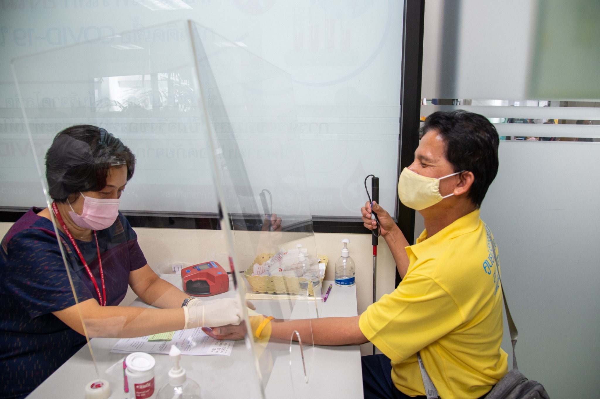 วันที่ 24 กรกฎาคม 2563 เวลา 10.30 น. รองศาสตราจารย์ แพทย์หญิงดุจใจ ชัยวานิชศิริ ผู้อำนวยการศูนย์บริการโลหิตแห่งชาติ พร้อมด้วย นายขรรค์ ประจวบเหมาะ ผู้อำนวยการสำนักงานจัดหารายได้ สภากาชาดไทย และประธานมูลนิธิช่วยคนตาบอดแห่งประเทศไทย ในพระบรมราชินูปถัมภ์ และนายต่อพงศ์ เสลานนท์ นายกสมาคมคนตาบอดแห่งประเทศไทย ร่วมเปิดโครงการ “ปิดตา เปิดใจ ให้โลหิต” (Bright Blood for Lives) เฉลิมพระเกียรติพระบาทสมเด็จพระวชิรเกล้าเจ้าอยู่หัว เนื่องในโอกาสวันเฉลิมพระชนมพรรษา 68 พรรษา และสมเด็จพระนางเจ้าสิริกิติ์ พระบรมราชินีนาถ พระบรมราชชนนีพันปีหลวง เนื่องในโอกาสวันเฉลิมพระชนมพรรษา 88 พรรษา ณ บริเวณชั้น 1 อาคารเฉลิมพระเกียรติบรมราชินีนาถ ศูนย์บริการโลหิตแห่งชาติ สภากาชาดไทย