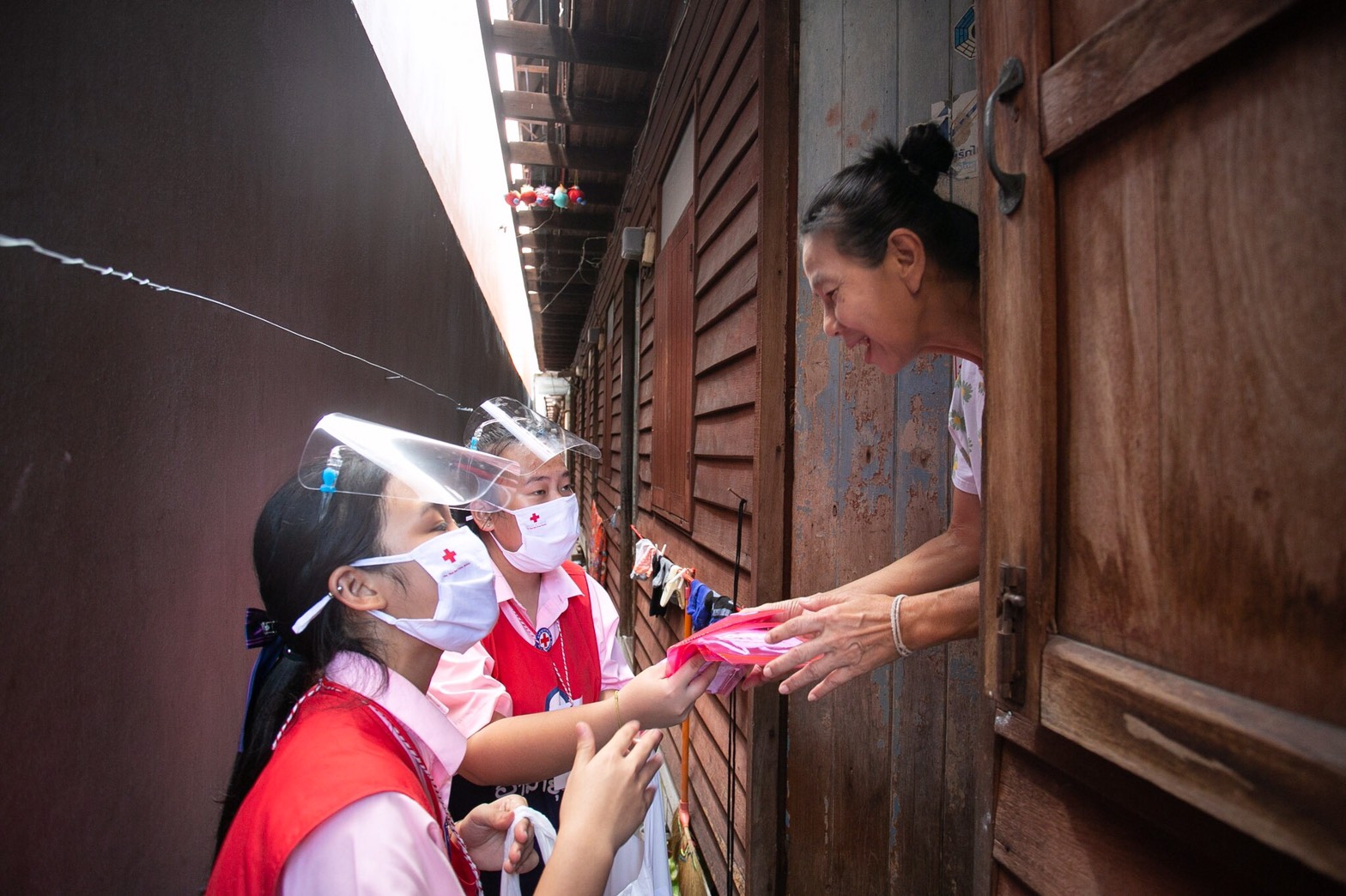 สำนักงานยุวกาชาด สภากาชาดไทย รวมพลังอาสายุวกาชาด กว่า 150 คน ร่วมกับประชาชนเขตพญาไท จัดกิจกรรมในโครงการ “อาสาพาพิชิต พ้นโควิด-19” ในวันเสาร์ที่ 22 สิงหาคม และวันเสาร์ที่ 29 สิงหาคม 2563 ณ ชุมชนวัดมะกอกกลางสวน และ ชุมชนอาเชียน เขตพญาไท กรุงเทพฯ
