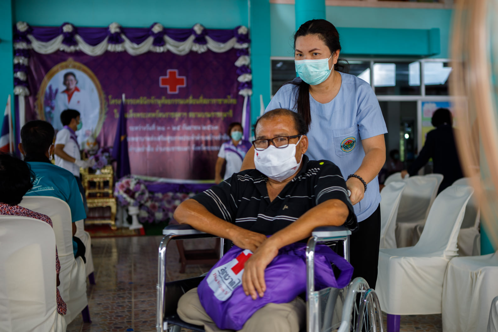 วันที่ 24 กันยายน 2563 พลโท นายแพทย์อำนาจ บาลี ผู้อำนวยการสำนักงานบรรเทาทุกข์ฯ พร้อมด้วยแพทย์หญิงกานดา ลิมิตเลาหพันธุ์ หัวหน้าฝ่ายบริการทางการแพทย์ ลงพื้นที่ตรวจเยี่ยมการดำเนินงานโครงการรถคลินิกจักษุศัลยกรรมเคลื่อนที่ สภากาชาดไทย ในสมเด็จพระเทพรัตนราชสุดาฯ สยามบรมราชกุมารี ปฏิบัติงานตรวจรักษาและผ่าตัดตา แก่ประชาชนที่ด้อยโอกาส ณ โรงพยาบาลส่งเสริมสุขภาพตำบลบ้านชำฆ้อ อำเภอเขาชะเมา จังหวัดระยอง ระหว่างวันที่ 21-25 กันยายน 2553 โดยมีนายสุรศักดิ์ เจริญศิริโชติ ผู้ว่าราชการจังหวัดระยอง และนางวราภรณ์ เจริญศิริโชติ นายกเหล่ากาชาดจังหวัดระยอง และคณะกรรมการเหล่ากาชาดจังหวัดระยอง หัวหน้าส่วนราชการ ให้การต้อนรับ พร้อมมอบชุดของขวัญสภากาชาดไทยแก่ผู้ที่ได้รับการผ่าตัดตา ในส่วนของสำนักงานเหล่ากาชาดจังหวัดระยอง ได้มอบรถเข็นนั่งแก่นายจรัญ บุญเลิศ ซึ่งเป็นผู้พิการขาขาดที่มารับการตรวจตา และในโอกาสเดียวกันนี้นางศรัญยา ชัชวาลพาณิชย์ ผู้จัดการส่วน หน่วยงานชุมชนสัมพันธ์ พื้นที่ 1 บริษัท พีทีที โกลบอล เคมิคอล จำกัด (มหาชน) ได้มอบเงินจำนวน 150,000 บาท ชมรมแม่ดีเด่น มอบเงินจำนวน 20,000 บาท ให้แก่สำนักงานเหล่ากาชาดจังหวัดระยอง เพื่อสนับสนุนการดำเนินงานของโครงการฯ