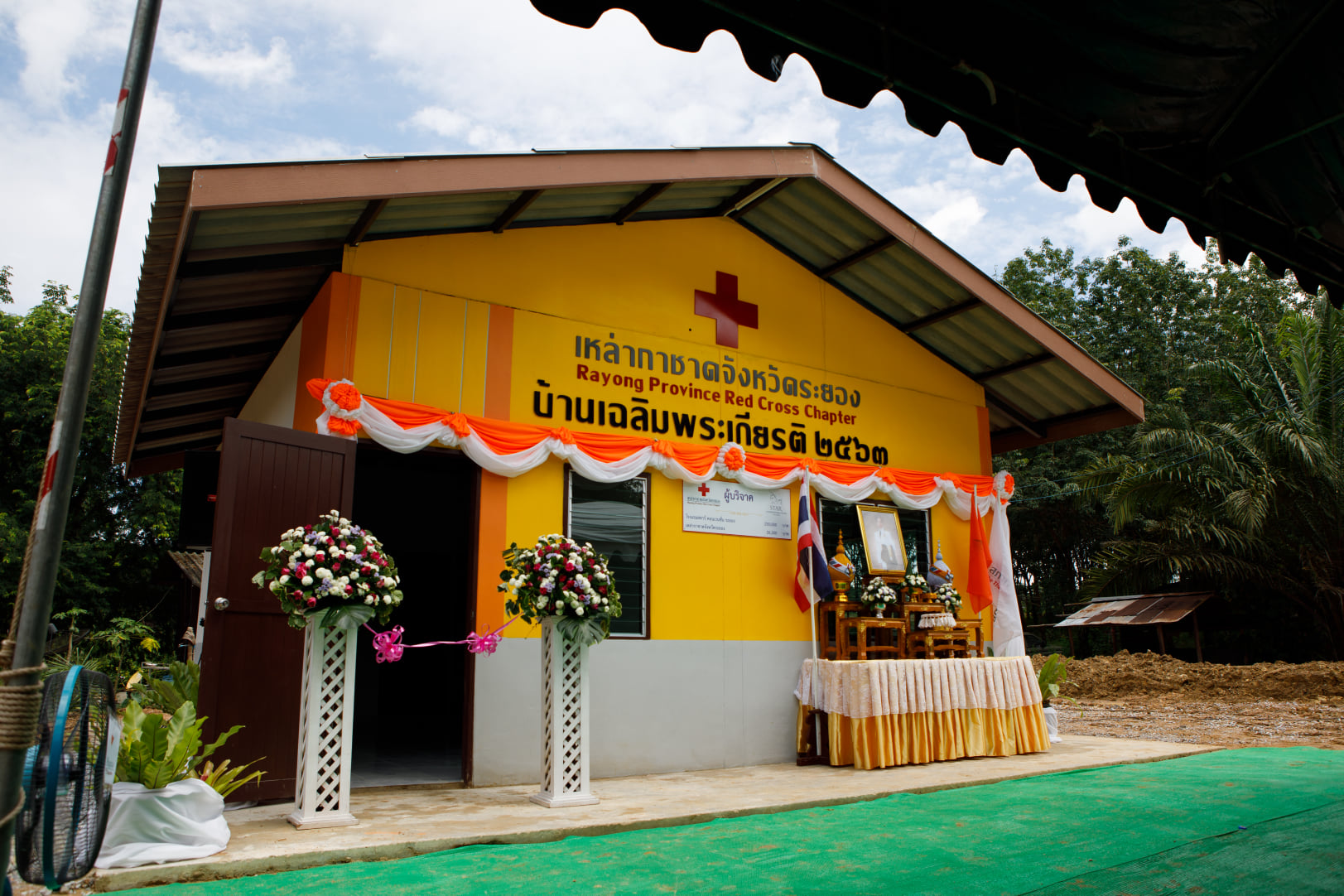 จากนั้น สำนักงานบรรเทาทุกข์และประชานามัยพิทักษ์ร่วมกับผู้ว่าราชการจังหวัดระยอง คณะกรรมและสมาชิกเหล่ากาชาดจังหวัดระยอง และหัวหน้าส่วนราชการ มอบบ้านตามโครงการสร้างบ้านกาชาดให้ผู้ยากไร้ในพื้นอำเภอชะเมา จำนวน 2 หลัง เพื่อเฉลิมพระเกียรติสมเด็จพระเจ้าลูกเธอ เจ้าฟ้าพัชรกิติยาภา นเรนทิราเทพยวดี กรมหลวงราชสาริณีสิริพัชร มหาวัชรราชธิดา