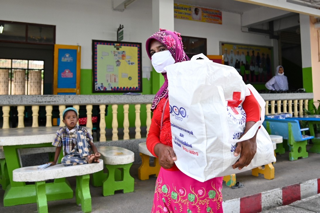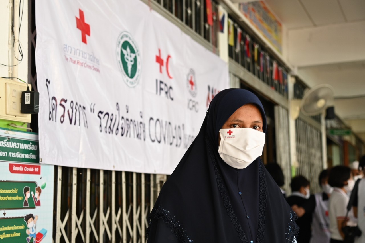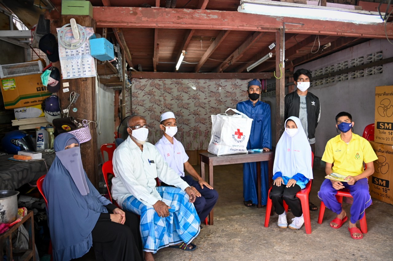 สำนักงานบรรเทาทุกข์และประชานามัยพิทักษ์ สภากาชาดไทย ได้ตระหนักและเห็นความสำคัญของการป้องกันและควบคุมการแพร่ระบาดของโรคในกลุ่มแรงงานข้ามชาติ โดยเฉพาะบริเวณชายแดนแม่สอด จังหวัดตาก รวมถึงต้องการเฝ้าระวังไม่ให้เกิดการระบาดระลอก 2 ขึ้นในประเทศไทย จึงได้ร่วมกับจังหวัดตาก พร้อมด้วยเหล่ากาชาดจังหวัด และหน่วยงานที่เกี่ยวข้อง มอบชุดธารน้ำใจฝ่าวิกฤตโควิด 19 และมอบหน้ากากอนามัยแบบผ้า ให้แก่กลุ่มแรงงานข้ามชาติ ในอำเภอ แม่สอด จังหวัดตาก โดยวันที่ 28 กันยายน 2563 พลโท นายแพทย์อำนาจ บาลี ผู้อำนวยการสำนักงานบรรเทาทุกข์ ฯ นายกฤษฎา บุญราช ผู้อำนวยการสำนักงานบริหารกิจการเหล่ากาชาด และนายอรรษิษฐ์ สัมพันธรัตน์ ผู้ว่าราชการจังหวัดตาก พร้อมคณะ จัดกิจกรรมมอบหน้ากากอนามัยแบบผ้า จำนวน 20,000 ชิ้น และแอลกอฮอล์ 70% จำนวน 160 ลิตร ให้กับผู้อำนวยการโรงพยาบาลแม่สอด จังหวัดตาก