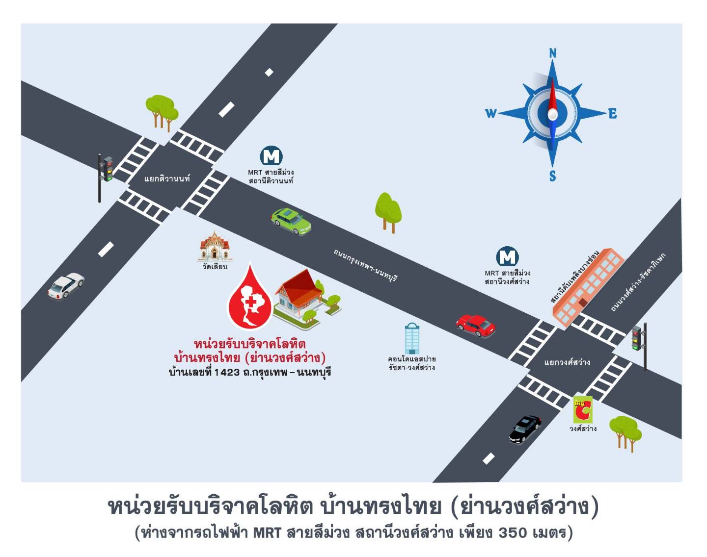 สำหรับผู้สนใจบริจาคโลหิตที่หน่วยรับบริจาคโลหิตบ้านทรงไทย (ย่านวงศ์สว่าง) ได้ทุกวัน ตั้งแต่เวลา 09.00 น. – 15.00 น. (ปิดทำการวันที่ 1 มกราคม ของทุกปี) สอบถามรายละเอียดได้ที่ ฝ่ายประชาสัมพันธ์และจัดหาผู้บริจาคโลหิต โทร. 0 2256 4300, 0 2263 9600-99 ต่อ 1101