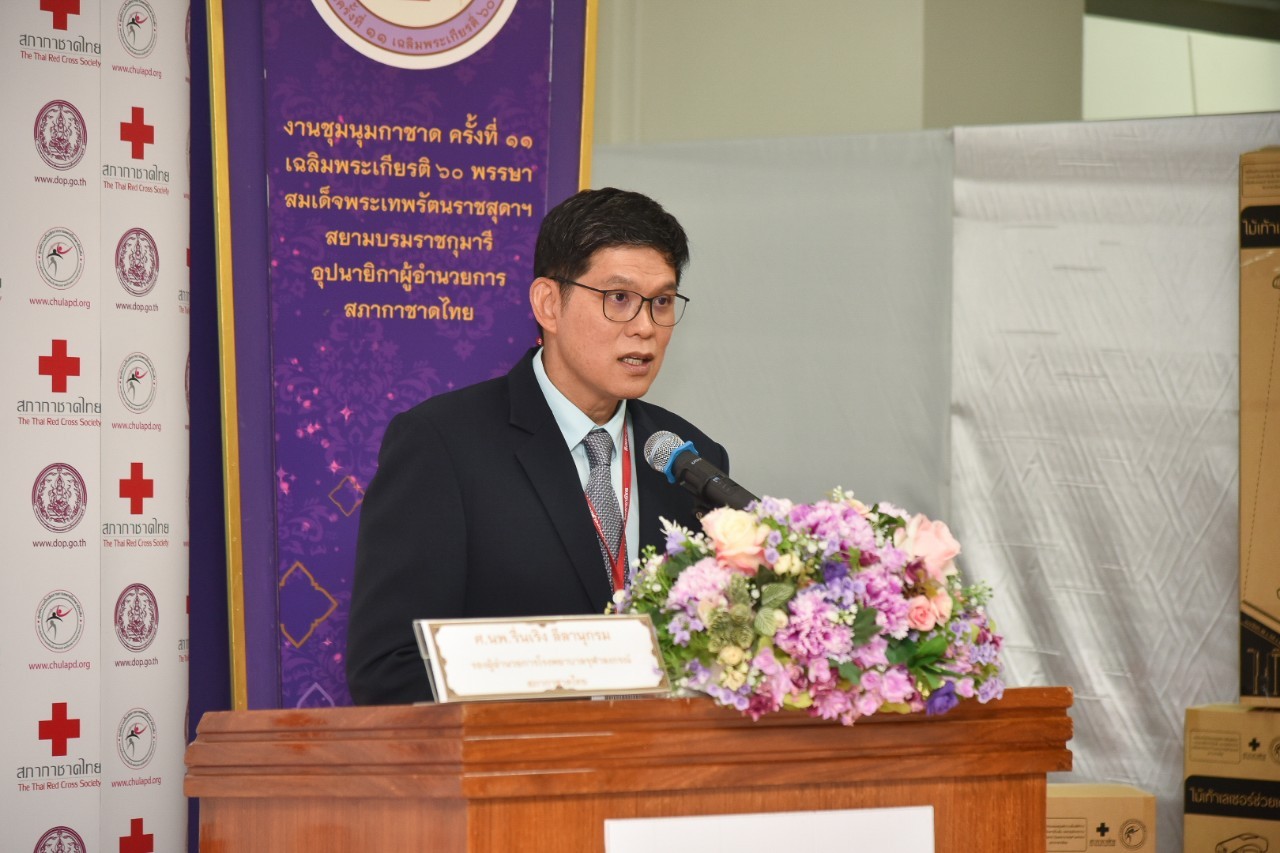 (จากซ้าย) นายกฤษฎา บุญราช ผอ.สำนักงานบริหารกิจการเหล่ากาชาด, ศ.นพ.รุ่งโรจน์ พิทยศิริ หัวหน้าศูนย์ความเป็นเลิศทางการแพทย์โรคพาร์กินสัน, ศ.นพ.รื่นเริง ลีลานุกรม รองผอ.โรงพยาบาลจุฬาลงกรณ์