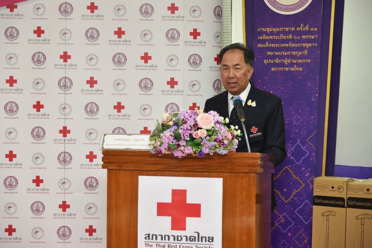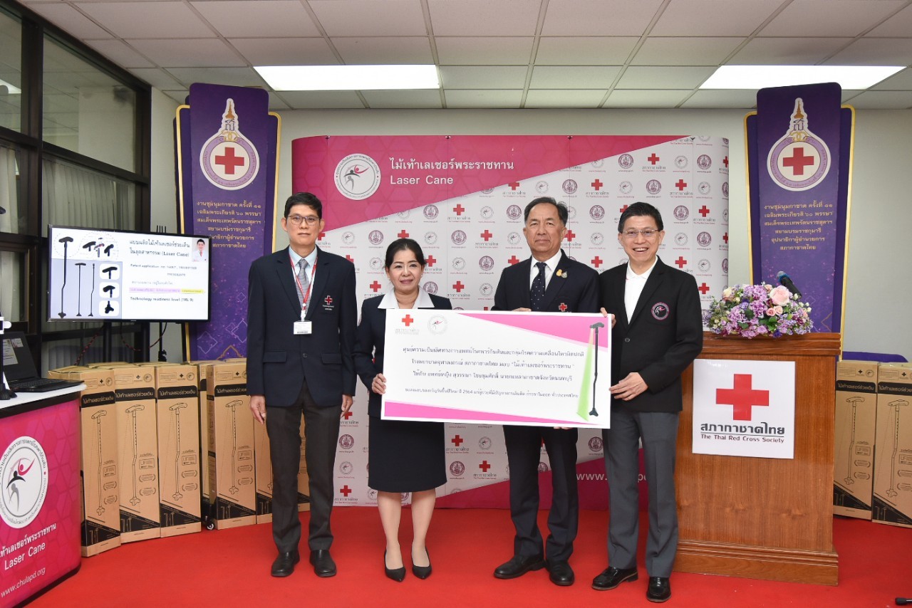 วันที่ 9 ธันวาคม 2563 ศ.นพ.รุ่งโรจน์ พิทยศิริ หัวหน้าศูนย์ความเป็นเลิศทางการแพทย์โรคพาร์กินสันฯ โรงพยาบาลจุฬาลงกรณ์ สภากาชาดไทย มอบไม้เท้าเลเซอร์พระราชทานให้แก่เหล่ากาชาดจังหวัด โดยมี นายกฤษฎา บุญราช ผู้อำนวยการสำนักงานบริหารกิจการเหล่ากาชาด เป็นตัวแทนรับมอบไม้เท้าพระราชทานเพื่อส่งมอบแก่ผู้ป่วยพาร์กินสันใน 76 จังหวัด จำนวนทั้งสิ้น 2,096 ชิ้น