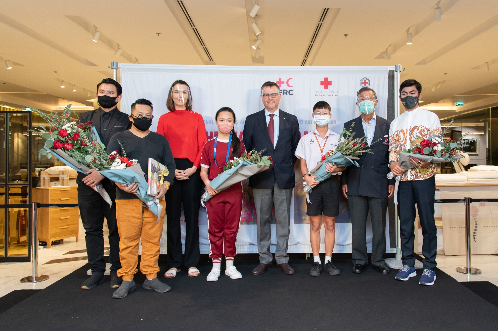 14 ธันวาคม 2563 เวลา 14.00 น. นายสวนิต คงสิริ ผู้ช่วยเลขาธิการสภากาชาดไทย ฝ่ายวิเทศสัมพันธ์ นายคริสตอฟ ซุตแตร์ ผู้อำนวยการสำนักงานภูมิภาค คณะกรรมการกาชาดระหว่างประเทศ และนางบาร์บารา วิบเมอร์ รองผู้อำนวยการฝ่ายบริหาร สหพันธ์สภากาชาดและสภาเสี้ยววงเดือนแดงระหว่างประเทศ ร่วมพิธีเปิดนิทรรศการ “Red Cross Movement Art Exhibition” และมอบรางวัลแก่ผู้ชนะการประกวดภาพวาดในหัวข้อ “มนุษยธรรมคืออะไร” ณ ชั้น 3 โซนลิฟวิ่งฮอลล์ ห้างสรรพสินค้าสยามพารากอน