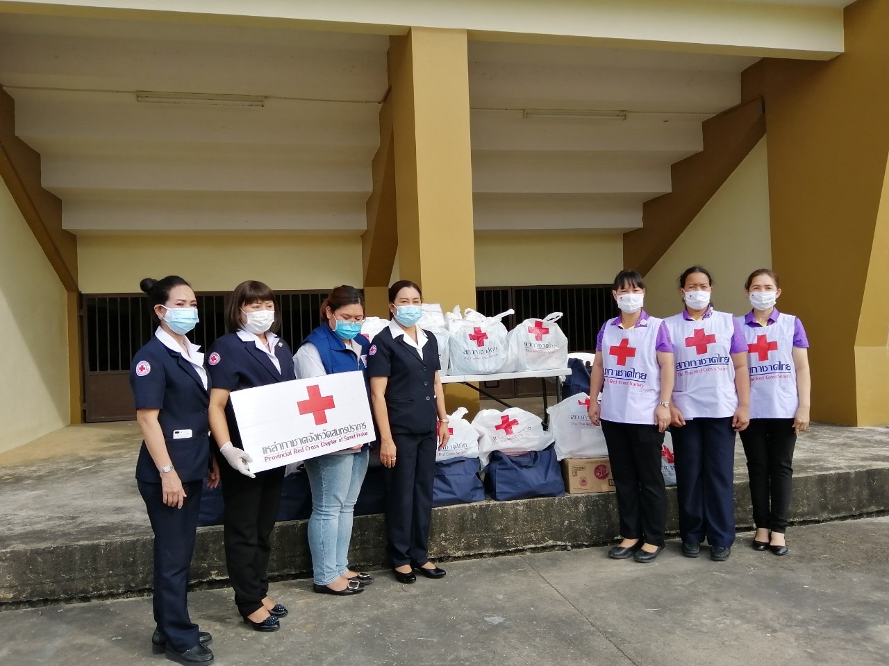 เมื่อวันที่ 23 ธ.ค. 63 เวลา 15.00 น. นางนงรัตน์ คงเกษม นายกเหล่ากาชาดจังหวัดสมุทรปราการ คณะกรรมการกาชาด พร้อมด้วยเจ้าหน้าที่สถานีกาชาดที่ 5 สวางคนิวาส สำนักงานบรรเทาทุกข์และประชานามัยพิทักษ์ สภากาชาดไทย และหน่วยงานที่เกี่ยวข้อง มอบถุงยังชีพและเครื่องอุปโภคบริโภคให้แก่แรงงานข้ามชาติจากจังหวัดสมุทรสาครที่ถูกนายจ้างนำมาปล่อยทิ้งไว้ จำนวน 18 คน ที่ถนนบางนา-ตราด อำเภอบางพลี จังหวัดสมุทรปราการ ทั้งนี้แรงงานทุกคนจะต้องถูกกักตัวเพื่อรอผลการตรวจหาเชื้อไวรัสโคโรนา 2019 (COVID-19) ณ Local Quarantine ต.บางปลา อ.บางพลี จ.สมุทรปราการ