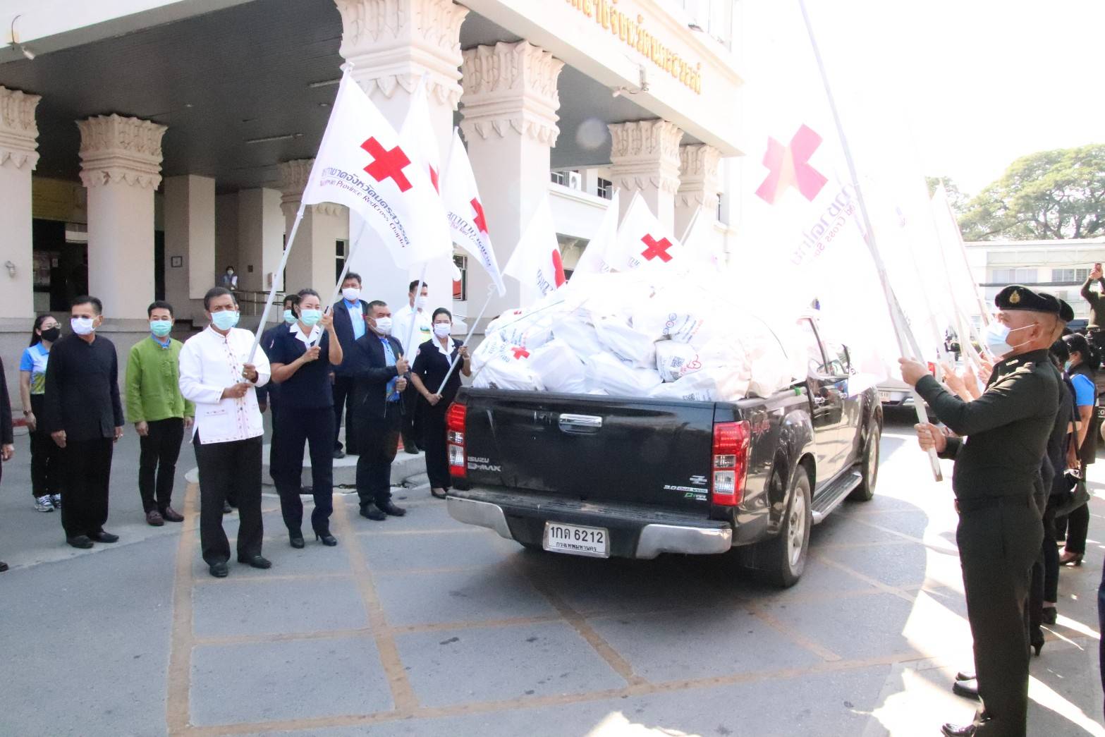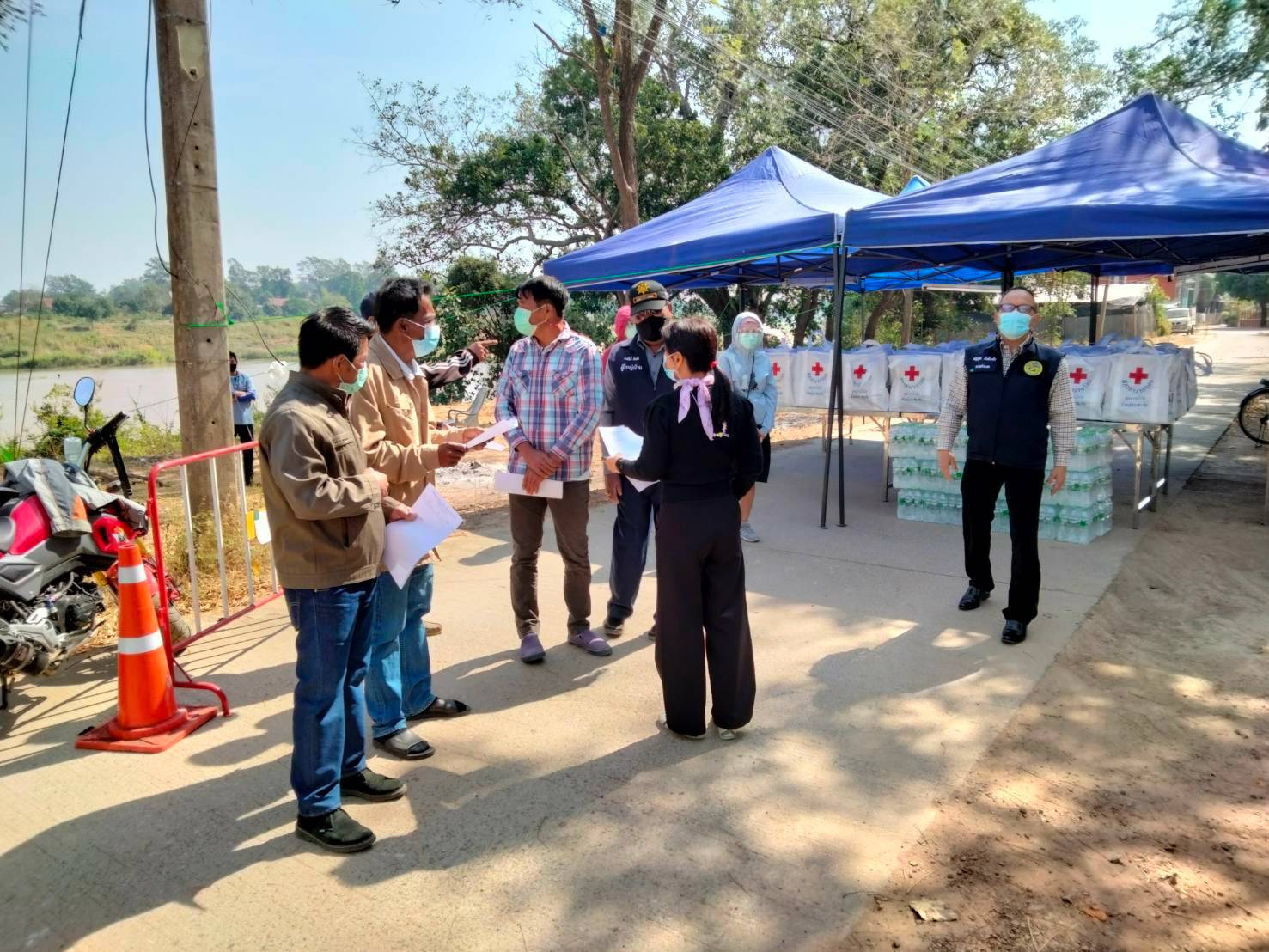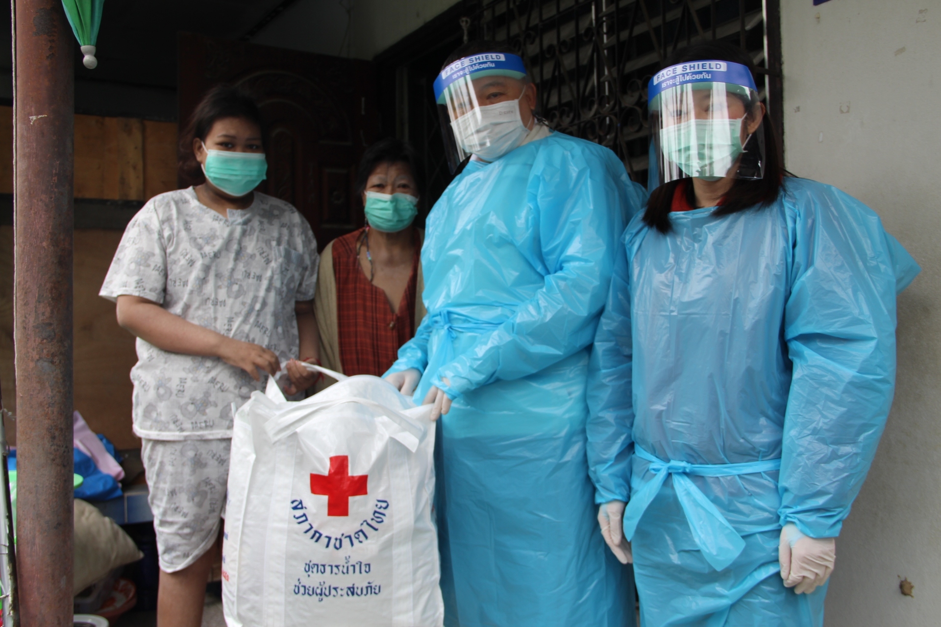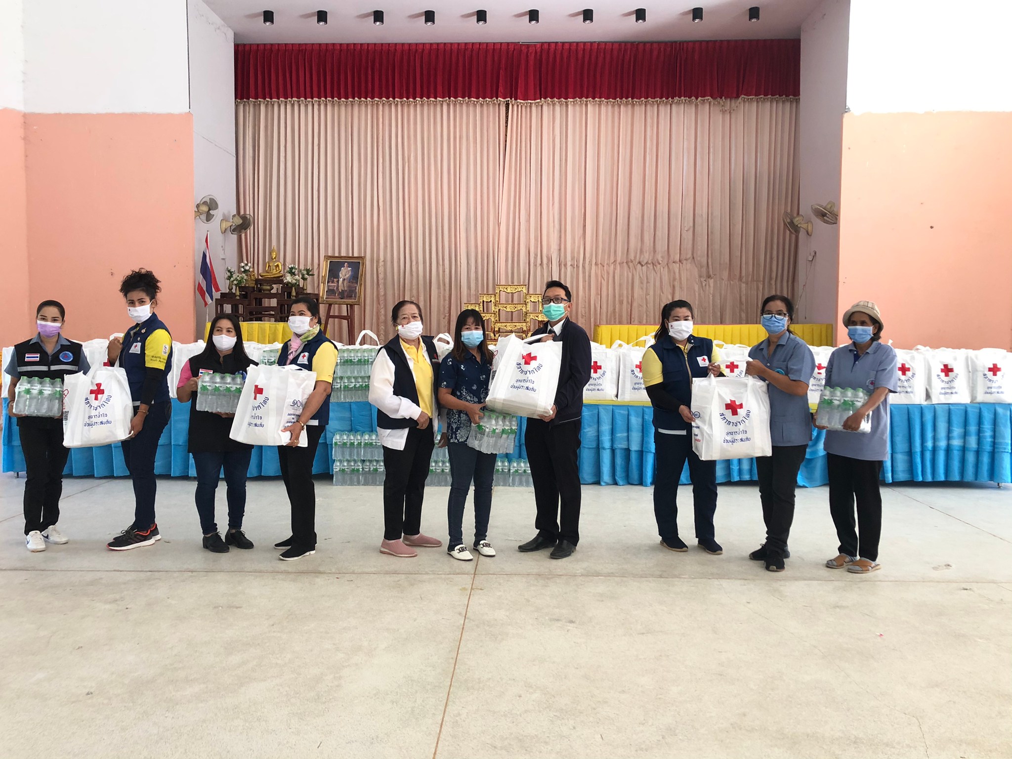 เนื่องจากสถานการณ์การแพร่ระบาดของโรคโควิด-19 สภากาชาดไทย ซึ่งเป็นองค์การสาธารณกุศลระดับชาติ ดำเนินการโดยยึดหลักมนุษยธรรมตามหลักการกาชาดสากลและช่วยเหลือผู้ยากไร้ที่ได้รับผลกระทบจากโรคโควิด-19 โดยกระจายความช่วยเหลือไปยังส่วนภูมิภาคผ่านสำนักงานบริหารกิจการเหล่ากาชาด สำนักงานบรรเทาทุกข์และประชานามัยพิทักษ์ เหล่ากาชาดจังหวัดและกิ่งกาชาดอำเภอทั่วประเทศ ด้วยการร่วมมือกับหลายภาคส่วนและอาสาสมัครสาธารณสุขประจำหมู่บ้าน (อสม.) ในการบรรเทาความเดือดร้อนของประชาชนที่ยากไร้และขาดแคลน อาทิ มอบชุดธารน้ำใจ กู้ชีวิตฝ่าวิกฤต COVID-19 พร้อมน้ำดื่ม และเข้าเยี่ยมเพื่อสร้างขวัญและกำลังใจให้แก่กลุ่มเสี่ยงที่ต้องกักตนเอง ตามมาตรการของศูนย์บริหารสถานการณ์การแพร่ระบาดของโรคติดเชื้อไวรัสโคโรนา 2019 (ศบค.) เพื่อป้องกันการแพร่ระบาดของโรคโควิด-19