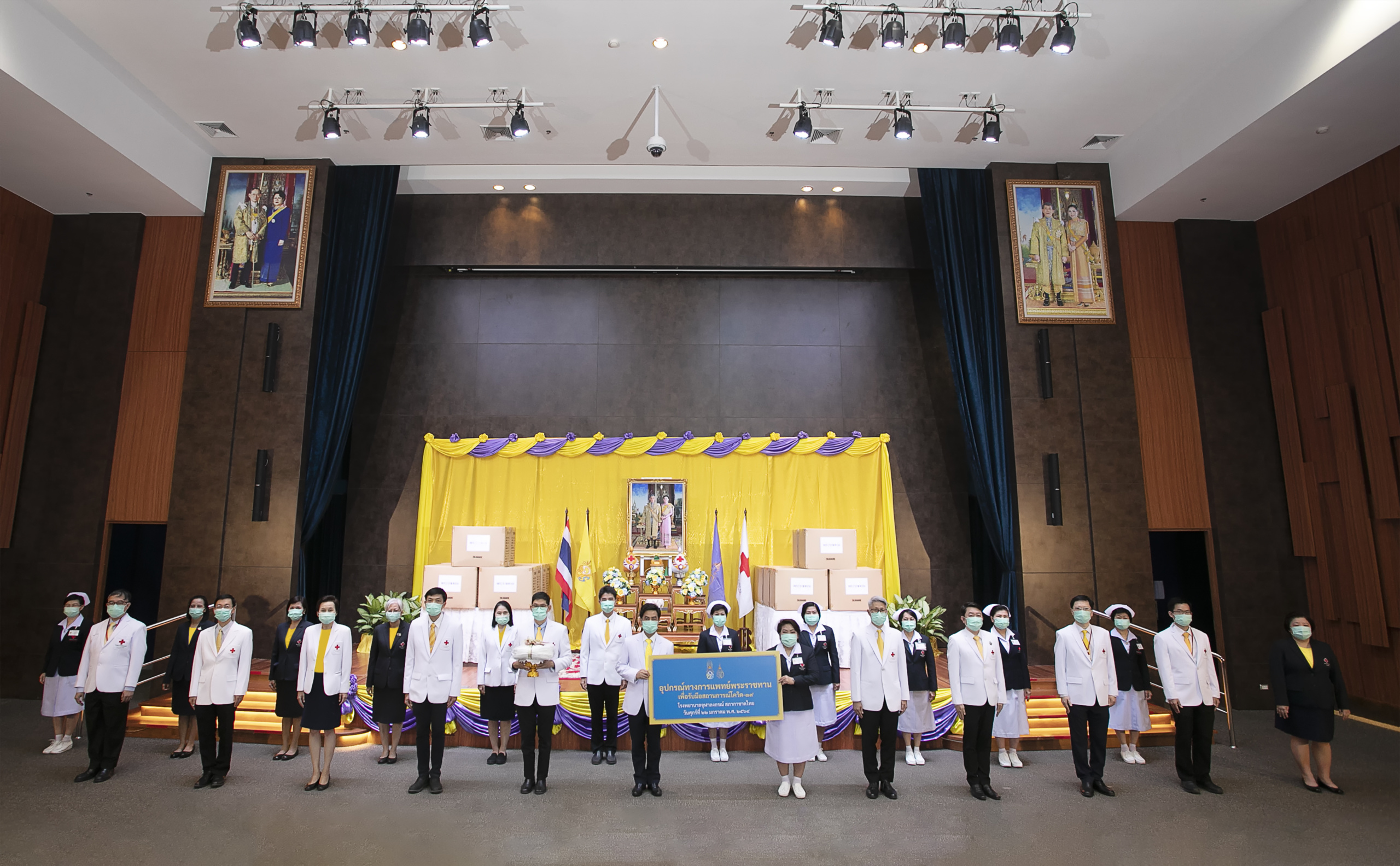 พระบาทสมเด็จพระเจ้าอยู่หัวและสมเด็จพระนางเจ้าฯ พระบรมราชินี ทรงพระกรุณาโปรดเกล้าฯ พระราชทานอุปกรณ์ทางการแพทย์ เพื่อเพิ่มศักยภาพ และประสิทธิภาพในการดูแลรักษาผู้ป่วยโรคติดเชื้อไวรัสโคโรนา 2019 (โควิด-19) แก่โรงพยาบาลจุฬาลงกรณ์ สภากาชาดไทย โดยมี ศ.นพ.สุทธิพงศ์ วัชรสินธุ ผู้อำนวยการโรงพยาบาลจุฬาลงกรณ์ สภากาชาดไทย พร้อมด้วยคณะผู้บริหาร แพทย์ พยาบาล รับพระราชทาน หน้าพระบรมฉายาลักษณ์ ณ ห้องประชุม 1210 ชั้น 12 อาคารภูมิสิริมังคลานุสรณ์ โรงพยาบาลจุฬาลงกรณ์ สภากาชาดไทย เมื่อวันที่ 22 มกราคม 2564