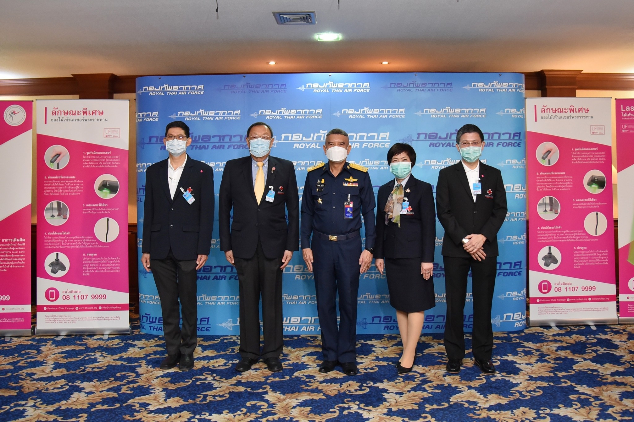 วันที่ 25 กุมภาพันธ์ 2564 นายขรรค์ ประจวบเหมาะ ผู้อำนวยการสำนักงานจัดหารายได้ สภากาชาดไทย พร้อมด้วย ศ.นพ.รื่นเริง ลีลานุกรม รองผู้อำนวยการ โรงพยาบาลจุฬาลงกรณ์ สภากาชาดไทย ฝ่ายบริการ และศ.นพ.รุ่งโรจน์ พิทยศิริ หัวหน้าศูนย์ความเป็นเลิศทางการแพทย์โรคพาร์กินสัน และกลุ่มโรคความเคลื่อนไหวผิดปกติ โรงพยาบาลจุฬาลงกรณ์ สภากาชาดไทย เป็นผู้แทนสภากาชาดไทยส่งมอบไม้เท้าเลเซอร์พระราชทาน ในโครงการ ไม้เท้าเลเซอร์ช่วยเดินสมเด็จพระนางเจ้าสิริกิติ์ พระบรมราชินีนาถ พระบรมราชชนพันปีหลวง โรงพยาบาลจุฬาลงกรณ์ ให้แก่ พลอากาศเอกแอร์บูล สุทธิวรรณ ผู้บัญชาการทหารอากาศไทย ณ ห้องรับรองพิเศษ 1 กองทัพอากาศไทย เขตดอนเมือง กรุงเทพฯ