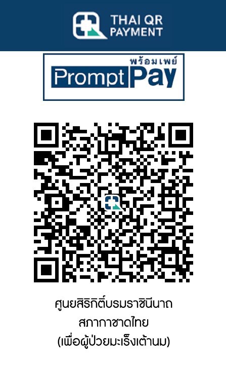 ผู้มีจิตศรัทธาสามารถสมทบทุนสนับสนุนและพัฒนากระบวนการรักษามะเร็งเต้านมด้วยภูมิคุ้มกันบำบัด ได้ที่ ธนาคารไทยพาณิชย์ ชื่อบัญชี สำนักงานจัดหารายได้ สภากาชาดไทย (2) เลขบัญชี 045-2-62588-8 ลดหย่อนภาษีได้ 2 เท่า หากประสงค์ขอรับใบเสร็จ โปรดส่งหลักฐานการบริจาค พร้อมระบุ : โครงการศูนย์สิริกิติ์บรมราชินีนาถสภากาชาดไทยเพื่อผู้ป่วยมะเร็งเต้านม ส่งไปที่อีเมล : [email protected] โทรสาร 0 2652 4440 หรือ บริจาคด้วยการสแกน QR code ผ่าน Application Mobile Banking เข้าระบบ e-donation ลดหย่อนภาษี 2 เท่า โดยไม่ต้องขอรับใบเสร็จ สอบถามข้อมูลเพิ่มเติมโทร. 1664