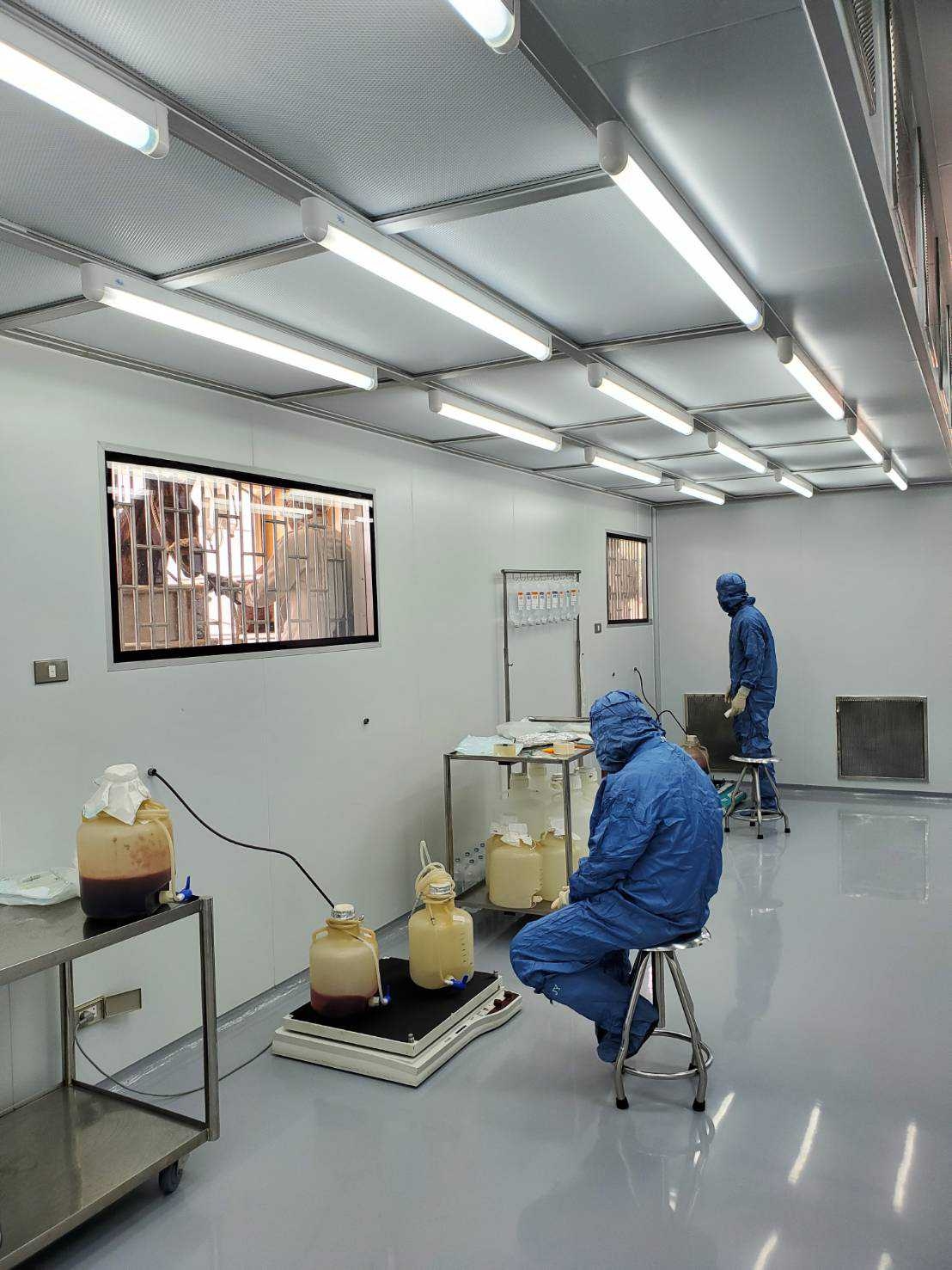 - โดยเลือดที่เจาะจะไหลเข้าขวดเก็บเลือดที่อยู่ภายในห้องสะอาด