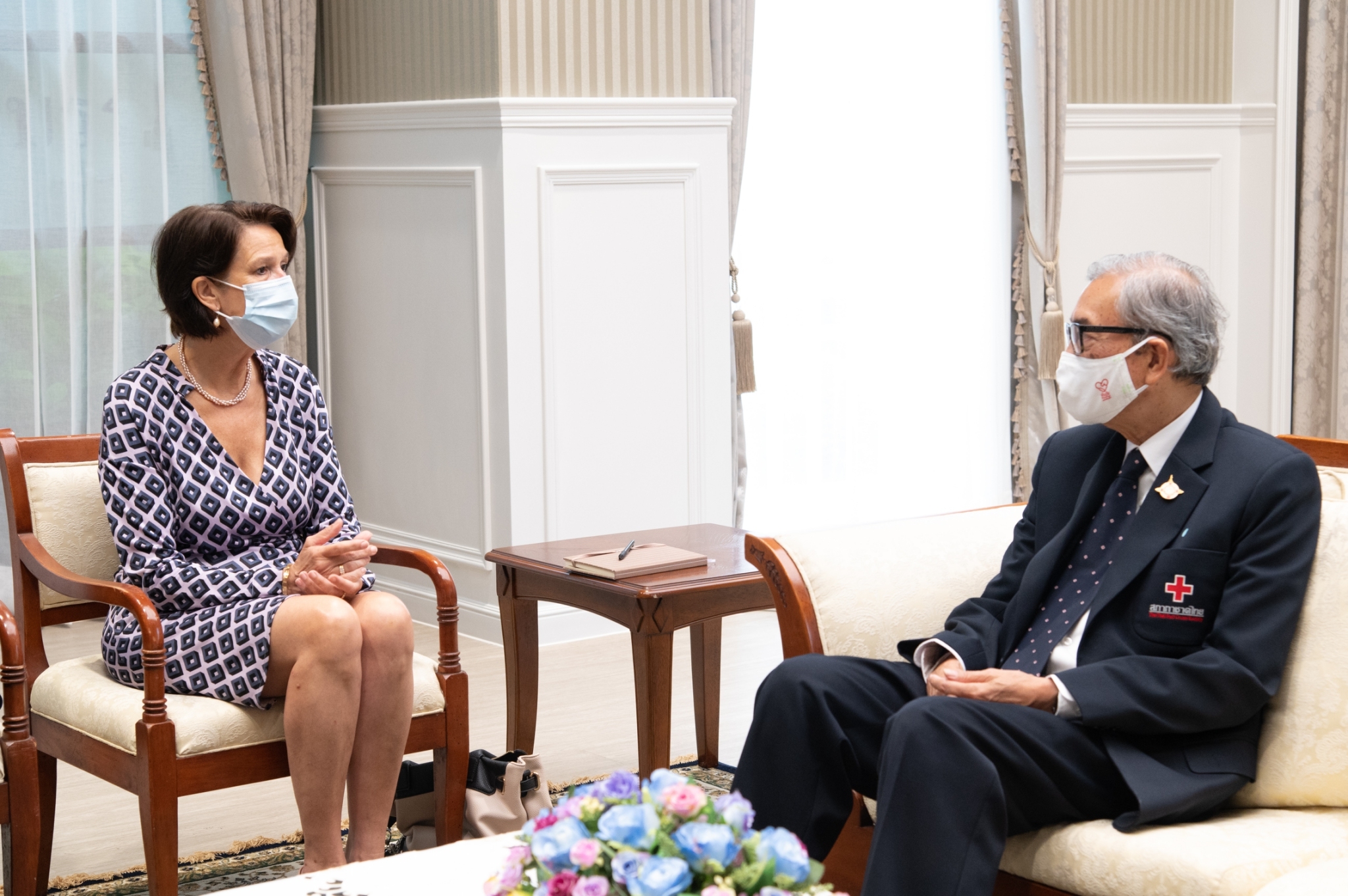 เมื่อวันที่ 7 พฤษภาคม 2564 นางคริสติน ชราเนอร์ บูร์เกเนอร์ ผู้แทนพิเศษของเลขาธิการสหประชาชาติ (ยูเอ็น) ในประเด็นเมียนมา พร้อมคณะ ได้เข้าพบหารือกับนายเตช บุนนาค เลขาธิการสภากาชาดไทย และ ดร.อภิชาติ ชินวรรโณ ผู้ช่วยเลขาธิการสภากาชาดไทย ฝ่ายวิเทศสัมพันธ์ ณ ห้องรับรองชั้นล่าง อาคารเทิดพระเกียรติสมเด็จพระญาณสังวร (เจริญ สุวฑฺฒโน) สภากาชาดไทย โดย ทั้งสองฝ่ายได้หารือ แลกเปลี่ยนข้อคิดเห็น มุมมอง เกี่ยวกับสถานการณ์ฉุกเฉินในสาธารณรัฐแห่งสหภาพเมียนมา ความพร้อมของสภากาชาดไทยกรณีเกิดการอพยพหนีภัยของชาวเมียนมาจำนวนมากเข้ามาในบริเวณชายขอบประเทศไทย และการแพร่ระบาดของโรคโควิด -19 ในศูนย์พักพิงชั่วคราวต่างๆ ทั้งนี้ ผู้แทนพิเศษฯ ยินดีให้การสนับสนุนสภากาชาดไทย ในการให้ความช่วยเหลือด้านมนุษยธรรมแก่ผู้หนีภัยจากสถานการณ์ในสาธารณรัฐแห่งสหภาพเมียนมา