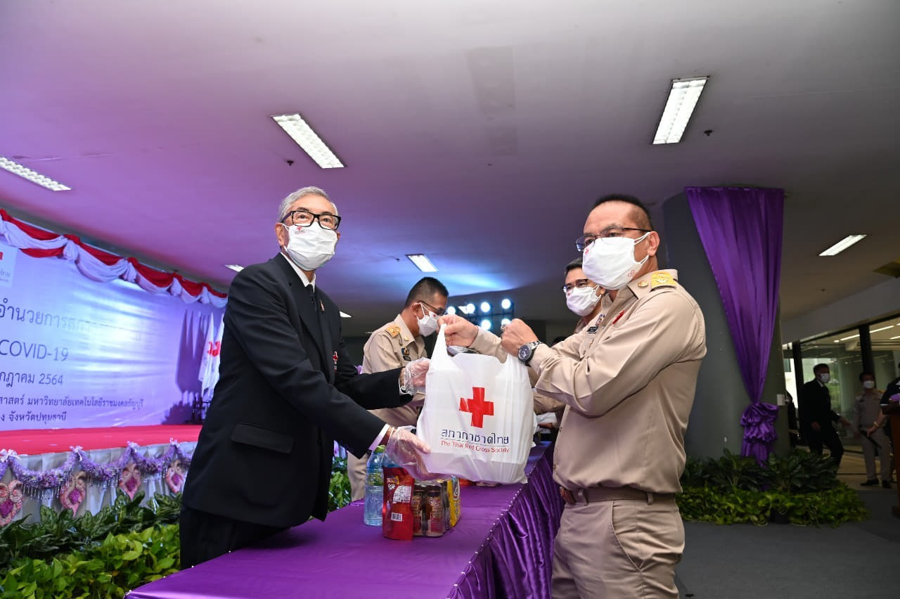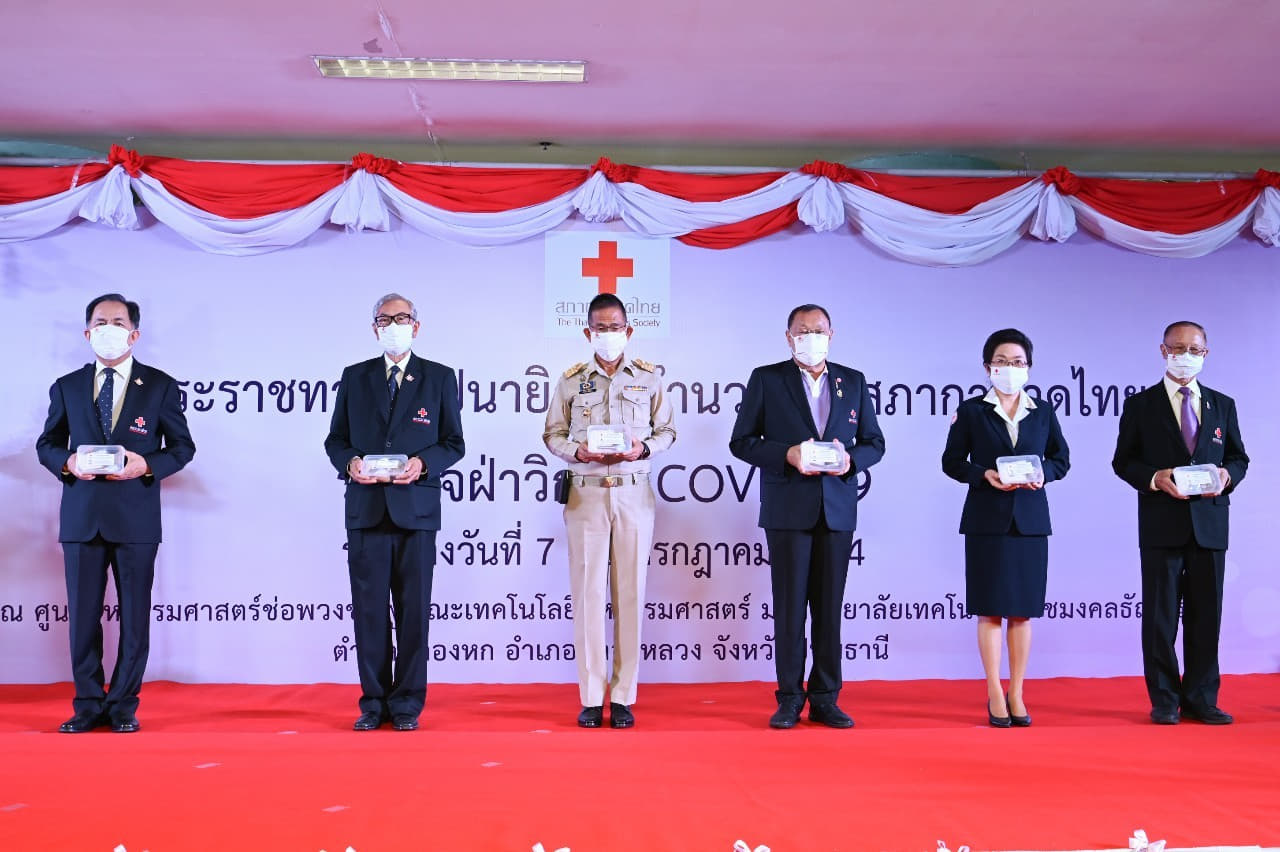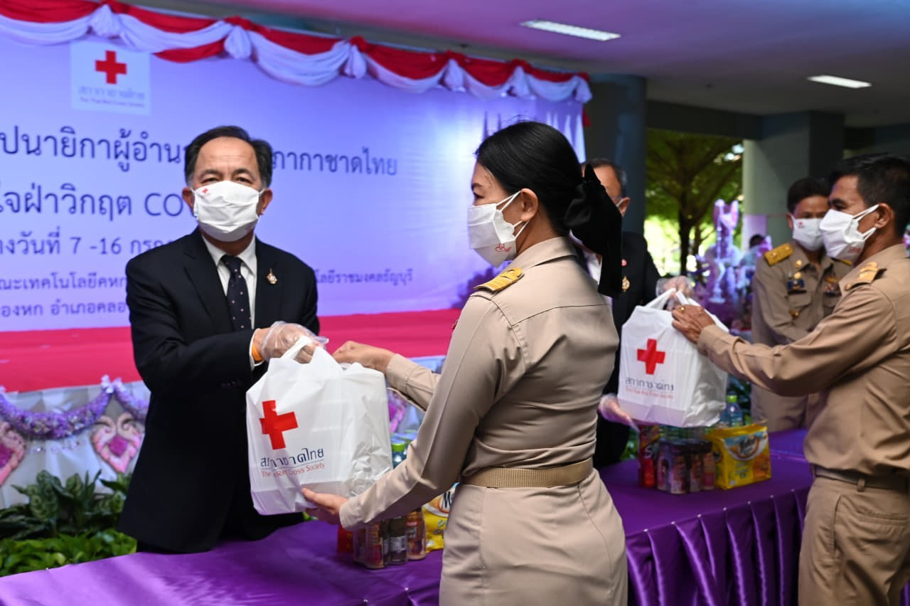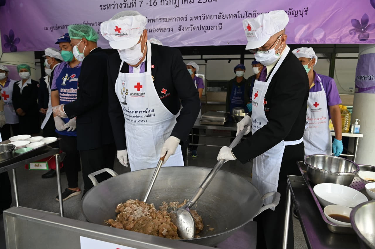 โดยในวันที่ 7 กรกฎาคม 2564 เวลา 10.00 น. นายเตช บุนนาค เลขาธิการสภากาชาดไทย เป็นประธานในพิธีเปิด “ครัวพระราชทาน อุปนายิกาผู้อำนวยการสภากาชาดไทย” พร้อมมอบอาหารพระราชทานให้แก่ผู้แทนจากอำเภอคลองหลวง 1,077 ชุด อำเภอธัญบุรี 600 ชุด อำเภอลำลูกกา 900 ชุด อำเภอเมืองปทุมธานี 300 ชุด อำเภอสามโคก 100 ชุด อำเภอลาดหลุมแก้ว 200 ชุด และอำเภอหนองเสือ 100 ชุด รวมจำนวน 3,277 ชุด ณ ศูนย์คหกรรมศาสตร์ช่อพวงชมพู คณะเทคโนโลยีคหกรรมศาสตร์ มหาวิทยาลัยเทคโนโลยีราชมงคลธัญบุรี อำเภอคลองหลวง จังหวัดปทุมธานี โดยเมนูอาหารพระราชทานในวันนี้ ประกอบด้วย ข้าวสวย ไก่กระเทียม น้ำพริก ผักสด ข้าวผัดปู และไก่เทอริยากิ จากนั้น ประธานและคณะได้เดินทางเข้าเยี่ยมผู้พิการ ผู้สูงอายุ และผู้ป่วยยากไร้ จำนวน 3 ราย ในพื้นที่ตำบลคลองหก อำเภอคลองหลวง พร้อมมอบอาหารพระราชทาน น้ำดื่ม และชุดธารน้ำใจกู้ชีวิตฝ่าวิกฤติโควิด-19 เพื่อน้อมสำนึกในพระมหากรุณาธิคุณอย่างหาที่สุดมิได้ ยังความปลาบปลื้มแก่ประชาชนที่ได้รับอาหารพระราชทาน และต่างสำนึกในพระมหากรุณาธิคุณเป็นล้นพ้น