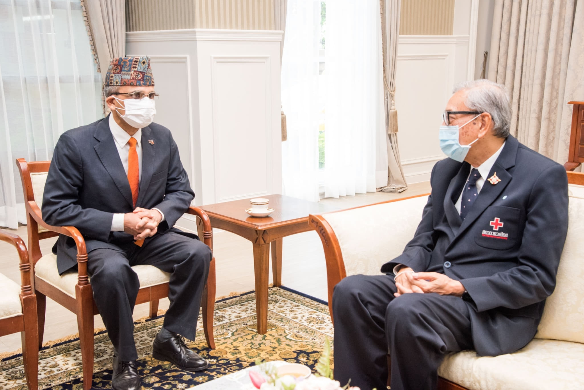 เมื่อวันที่ 9 กรกฎาคม 2564 นายคเณศ ประสาท ธกาล เอกอัครราชทูตเนปาลประจำประเทศไทย พร้อมด้วยนายเล็ก นาถ โกวตัม ที่ปรึกษาและอุปทูตเนปาลประจำประเทศไทย ร่วมพิธีรับมอบอุปกรณ์ทางการแพทย์ที่สภากาชาดไทยจะส่งให้สภากาชาดเนปาลเพื่อใช้ในการรับมือการระบาดใหญ่ของโรคโควิด – 19 โดยมีนายเตช บุนนาค เลขาธิการสภากาชาดไทย พร้อมด้วย ดร.อภิชาติ ชินวรรโณ ผู้ช่วยเลขาธิการสภากาชาดไทย ฝ่ายวิเทศสัมพันธ์ เป็นผู้ส่งมอบ ณ ห้องรับรอง ชั้นล่าง อาคารเทิดพระเกียรติสมเด็จพระญาณสังวร (เจริญ สุวฑฺฒโน) สภากาชาดไทย