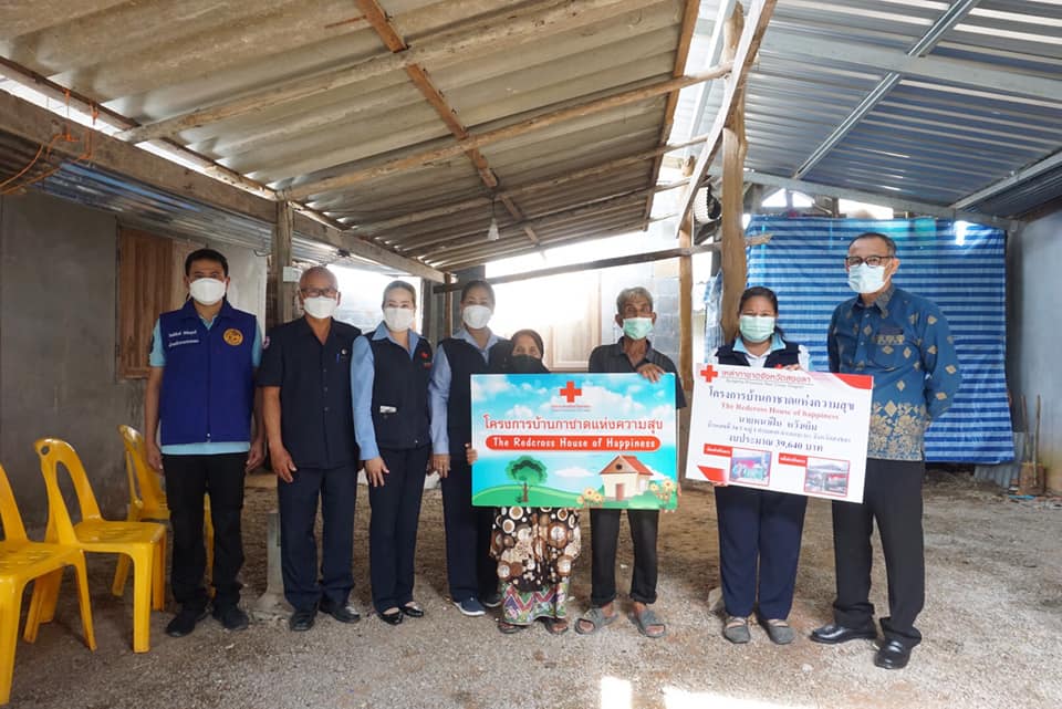 วันที่ 26 ส.ค.64 นายจารุวัฒน์ เกลี้ยงเกลา ผู้ว่าราชการจังหวัดสงขลา นางฉลวย พงศ์สุวรรณ รองนายกเหล่ากาชาดจังหวัดสงขลา นางพวงศรี นุ่นชูคันธ์ รองนายกเหล่ากาชาดจังหวัดสงขลา นายจรัญ จันทรปาน ปลัดจังหวัดสงขลา และนางเยาวลักษณ์ จันทรปาน ผู้ช่วยนายกเหล่ากาชาดจังหวัดสงขลา พร้อมด้วยนายอำเภอและผู้นำท้องถิ่น ส่งมอบบ้านให้ผู้ยากไร้ภายใต้โครงการ “บ้านกาชาดแห่งความสุข The Red Cross House of Happiness” ที่ได้รับการสนับสนุนงบประมาณในการซ่อมแซมที่อยู่อาศัยจากเหล่ากาชาดจังหวัดสงขลา พร้อมมอบเครื่องอุปโภคบริโภคที่จำเป็นให้กับกลุ่มเปราะบางในพื้นที่ 3 อำเภอ ได้แก่