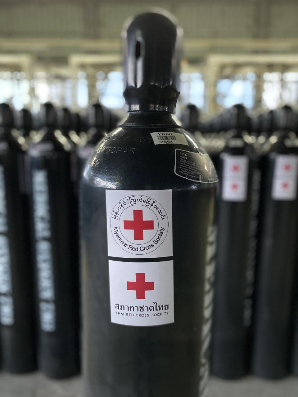 สภากาชาดไทย ร่วมกับ สมาคมธรุกิจไทย – เมียนมา และ สถานเอกอัครราชทูต ณ กรุงย่างกุ้ง เข้าร่วมพิธีส่งมอบถังออกซิเจน ให้สภากาชาดเมียนมา ในโครงการ “Here With You” เพื่อสนับสนุนปฏิบัติการโต้ตอบสถานการณ์การแพร่ระบาดใหญ่ของโรคโควิด- 19 ในสาธารณรัฐแห่งสหภาพเมียนมา