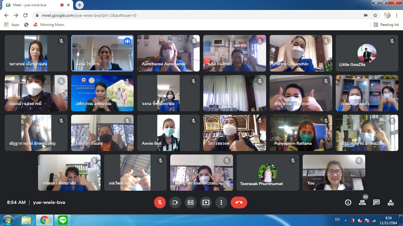 นางสุนันทา ศรอนุสิน ผู้อำนวยการสำนักงานยุวกาชาด รักษาการในตำแหน่งผู้อำนวยการสำนักงานอาสากาชาด กล่าวต้อนรับ ผู้เข้ารับการอบรมวิทยากรยุวกาชาด เรื่อง การดูแลผู้สูงอายุ ซึ่งสำนักงานยุวกาชาด ร่วมกับสำนักงาน กศน.จังหวัดจันทบุรี จัดขึ้นในรูปแบบออนไลน์ ผ่านสื่ออิเล็กทรอนิกส์ ให้แก่บุคลากรทางการศึกษาจาก กศน.ทุกอำเภอ ของจังหวัดจันทบุรี จำนวน 2 รุ่น รุ่นละ 2 วัน โดยจัดอบรมทั้งภาคทฤษฎี และฝึกทักษะการเป็นวิทยากร รุ่นที่ 1 เมื่อวันที่ 8 และ 10 พฤศจิกายน 2564 และ รุ่นที่ 2 เมื่อวันที่ 9 และ 11 พฤศจิกายน 2564 มีผู้ผ่านอบรม จำนวนทั้งสิ้น 117 คน