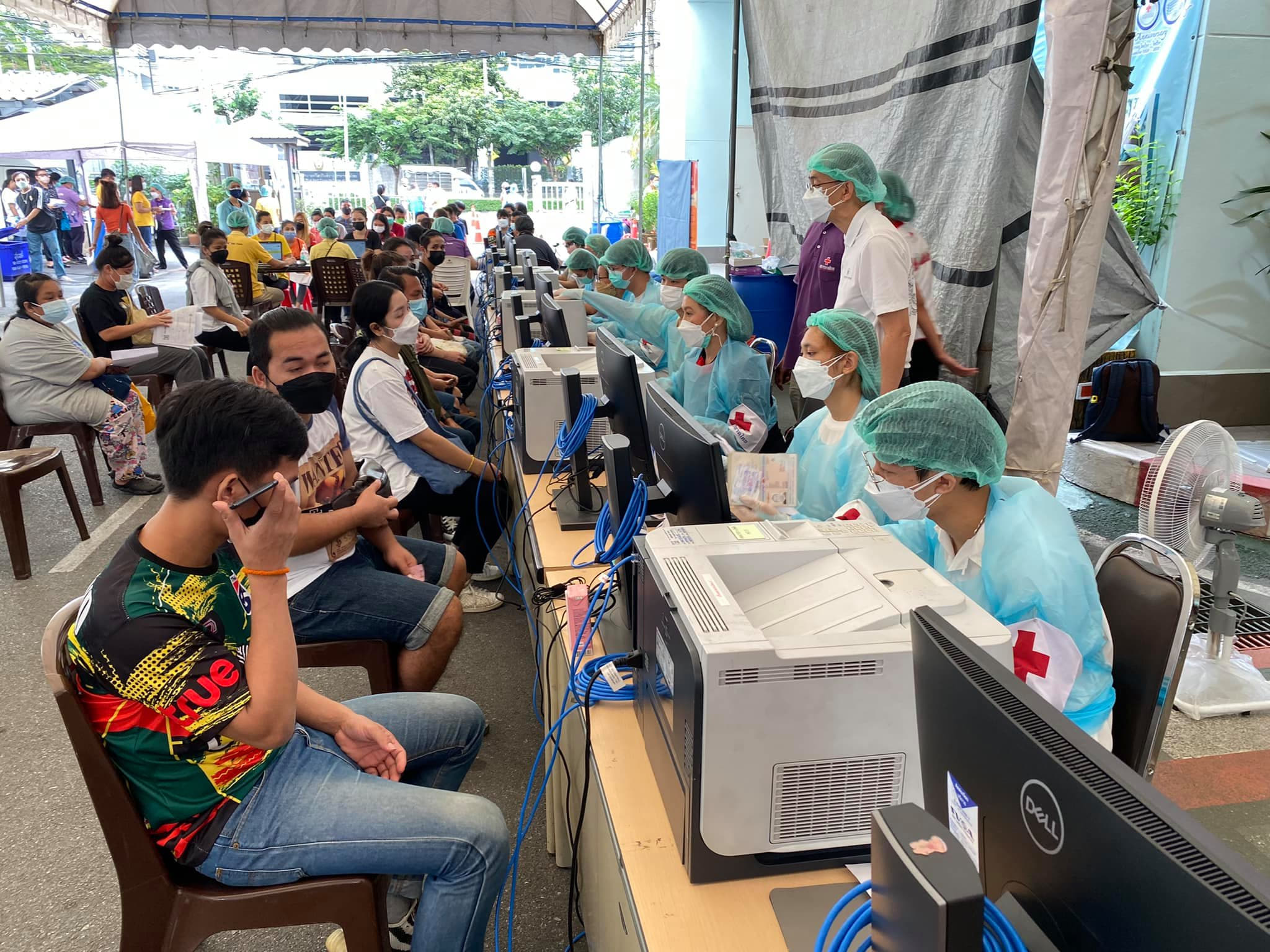 อาสากาชาดปฏิบัติงานออกหน่วยฉีดวัคซีนป้องกันโรคโควิด-19