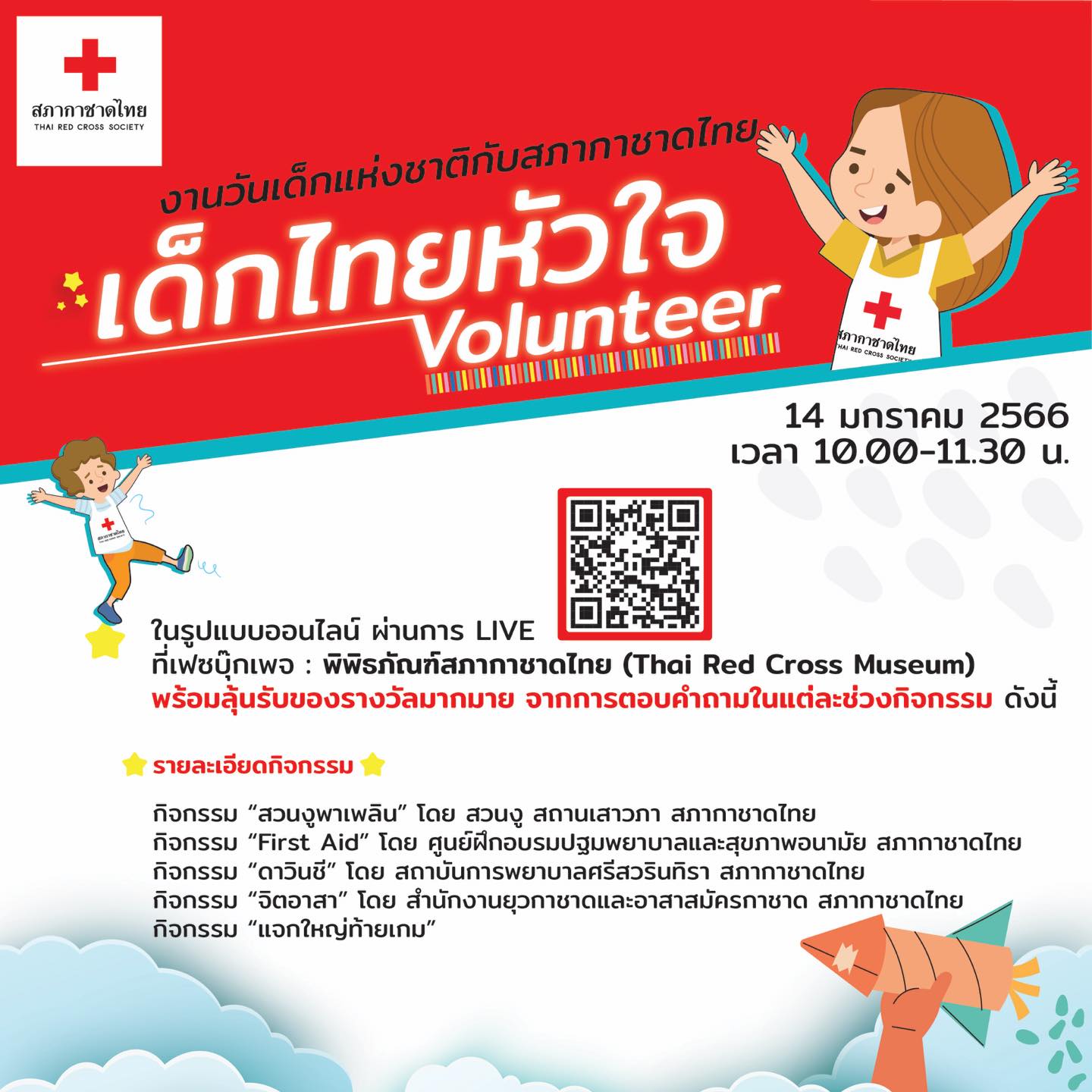 เชิญชวนเด็ก ๆ และเยาวชน ร่วมกิจกรรม “วันเด็กแห่งชาติกับสภากาชาดไทย ประจำปี 2566” ภายใต้แนวคิด “เด็กไทย หัวใจ Volunteer”