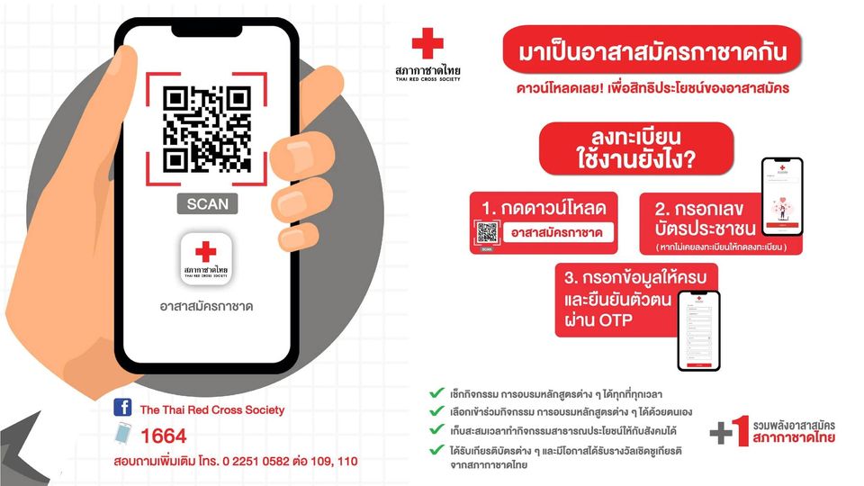 สนใจร่วมเป็น “อาสาสมัครสภากาชาดไทย” เพื่อมาเป็นส่วนหนึ่งในการช่วยเหลือและสร้างประโยชน์ให้กับสังคม