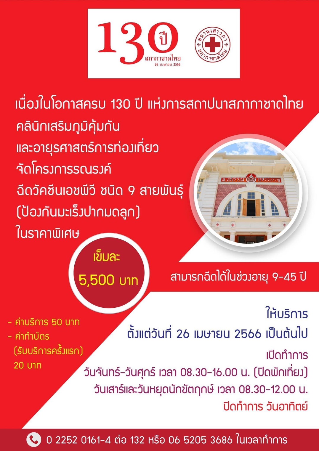 เนื่องในโอกาสครบ 130 ปี แห่งการสถาปนาสภากาชาดไทย คลินิกเสริมภูมิคุ้มกันและอายุรศาสตร์การท่องเที่ยว สถานเสาวภา สภากาชาดไทย