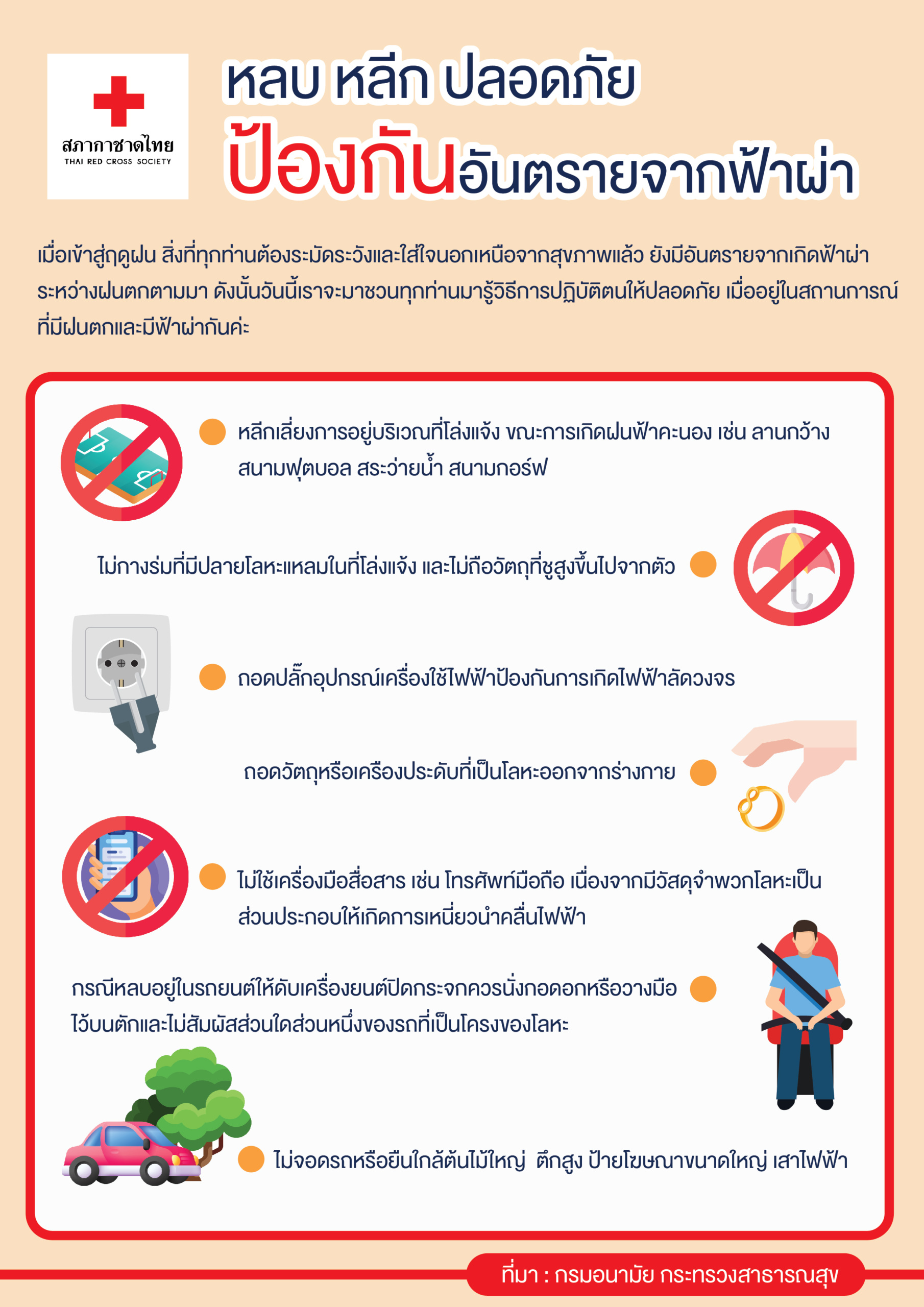 เมื่อเข้าสู่ฤดูฝน สิ่งที่ทุกท่านต้องระมัดระวังและใส่ใจนอกเหนือจากสุขภาพแล้ว ยังมีอันตรายจากการเกิดจากฟ้าผ่าระหว่างฝนตกตามมา ดังนั้นวันนี้เราจะมาชวนทุกท่านมารู้วิธีการปฏิบัติตนให้ปลอดภัย เมื่ออยู่ในสถานการณ์ที่มีฝนตกและมีฟ้าผ่ากัน