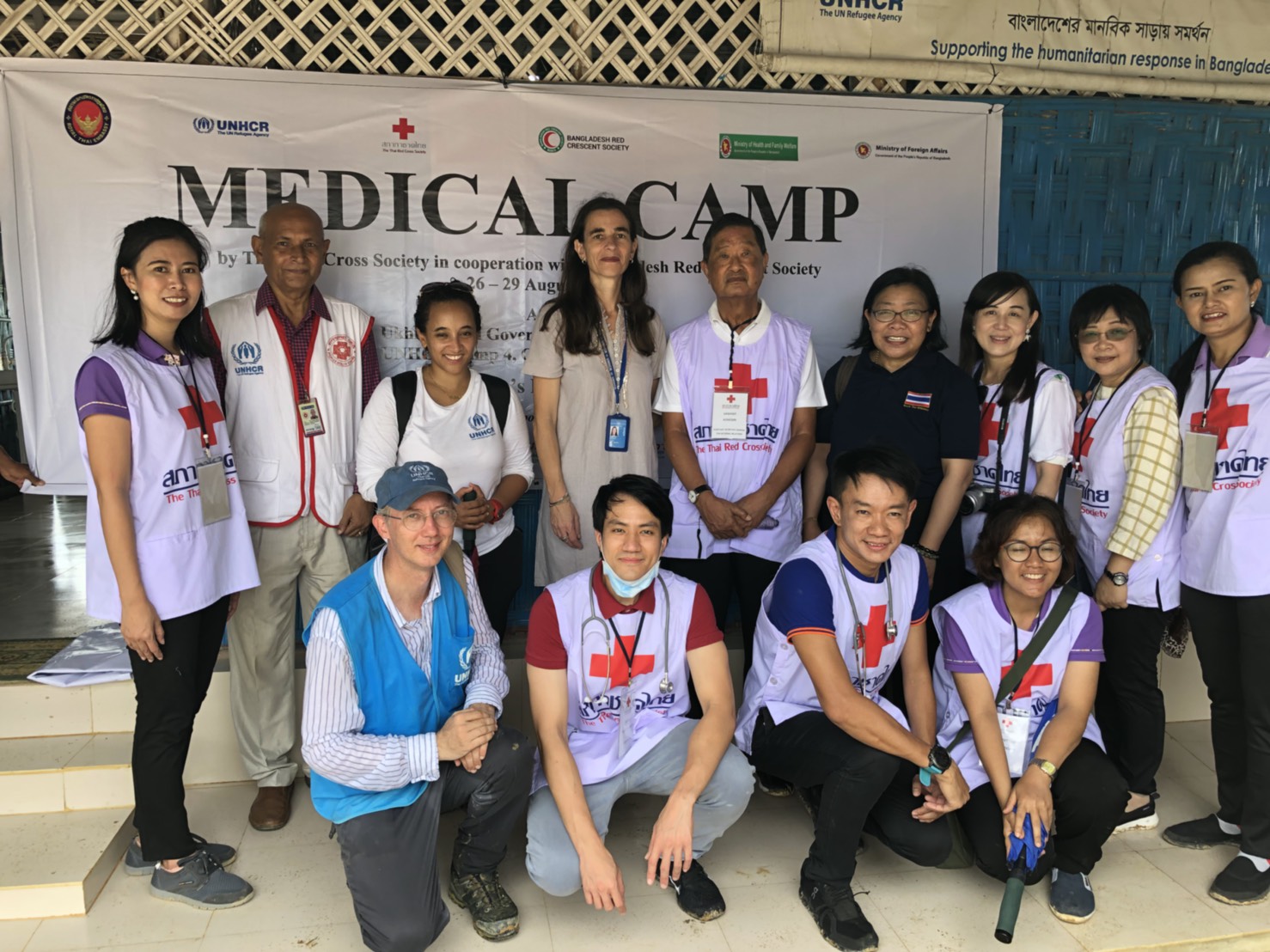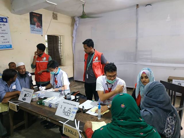นายสวนิต คงสิริ ผู้ช่วยเลขาธิการสภากาชาดไทย นำคณะแพทย์และพยาบาลจากสำนักงานบรรเทาทุกข์และประชานามัยพิทักษ์ สภากาชาดไทย โรงพยาบาลจุฬาลงกรณ์ สภากาชาดไทย และคณะแพทยศาสตร์ จุฬาลงกรณ์มหาวิทยาลัย รวมจำนวน 13 คน ตรวจรักษาทางด้านอายุรศาสตร์ สูตินารีเวช และกุมารเวช พร้อมทั้งบริการตรวจเลือด วัดความดัน ตรวจคลื่นหัวใจ และจ่ายยาให้แก่ผู้ป่วยโดยไม่คิดมูลค่า นอกจากนี้ยังมีการฝึกอบรมและการให้คำปรึกษาด้านสูตินารีเวชและกุมารเวชแก่เจ้าหน้าที่ทางการแพทย์ท้องถิ่นอีกด้วย การดำเนินการในครั้งนี้ นับเป็นครั้งแรกของสภากาชาดไทยที่ได้การจัดตั้งหน่วยแพทย์เคลื่อนที่เพื่อให้ความช่วยเหลือให้แก่บังกลาเทศด้านสาธารณสุขเพื่อเป็นการบรรเทาทุกข์จากวิกฤตการพลัดถิ่นของชาวโรฮีนจา ซึ่งได้รับความสนใจจากชาวบังกลาเทศเป็นอย่างยิ่ง โดยตลอดระยะเวลา 4 วัน หน่วยแพทย์สภากาชาดไทยได้ตรวจรักษาผู้ป่วยทั้งหมด 2,564 คน ส่วนใหญ่เป็นผู้หญิงและเด็กอายุต่ำกว่า 15 ปี โรคที่มีจำนวนผู้ป่วยมากที่สุด ได้แก่ โรคระบบทางเดินหายใจ โรคกระดูกและกล้ามเนื้อ และโรคระบบทางเดินอาหาร
