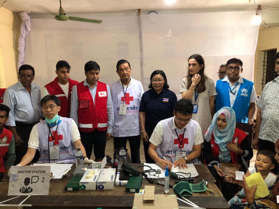 สภากาชาดไทยร่วมกับสถานเอกอัครราชทูต ณ กรุงธากา จัดโครงการนำหน่วยแพทย์ตรวจรักษาผู้พลัดถิ่นชาวโรฮีนจาและชุมชนท้องถิ่นที่ได้รับผลกระทบในเมืองค็อกซ์ บาซาร์ ระหว่างวันที่ 26 – 29 สิงหาคม 2561 โดย ที่จัดตั้งค่ายหน่วยแพทย์เคลื่อนที่ 2 แห่ง ได้แก่ 1. ตรวจรักษาชาวโรฮีนจาในบริเวณค่ายพักพิงของข้าหลวงใหญ่ผู้ลี้ภัยแห่งสหประชาชาติ 4 (UNHCR Camp 4) โซน O พื้นที่ Madhrehara และ 2. ตรวจรักษาชาวบังกลาเทศในชุมชนที่ได้รับผลกระทบที่โรงเรียนรัฐบาลตัวอย่าง (Ukhia Model Government School) ณ แขวงอุคเฮีย เขตคอกซ์บาซาร์