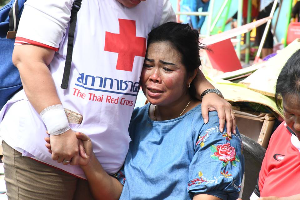 ขณะเกิดภัย ระหว่างวันที่ 3 – 10 มกราคม 2562 สำนักงานบรรเทาทุกข์ฯ ได้ลงพื้นที่สำรวจ ประเมินความต้องการ เยี่ยมให้กำลังใจ และให้ความช่วยเหลือผู้ประสบภัยในด้านต่าง ๆ ได้แก่ มอบชุดธารน้ำใจฯ ในพื้นที่จังหวัดนครศรีธรรมราช ประจวบคีรีขันธ์ และพัทลุง รวมทั้งสิ้น 6,475 ชุด คิดเป็นมูลค่า 6,475,000 บาท มอบผ้าห่ม 200 ผืน ชุดสุขอนามัยประจำวัน (Hygiene Kit) 200 ชุด ส่งทีมกองอำนวยการส่วนหน้า ส่งรถยูนิม๊อก 1 คัน รถบรรทุก 1 คัน และรถโฟร์วีล 1 คัน ปฏิบัติงานตั้งแต่วันที่ 5 มกราคม 2562 เป็นต้นไปจนกว่าสถานการณ์จะคลี่คลาย อีกทั้งยังมีการเตรียมพร้อมทีมปฏิบัติงาน ได้แก่ หน่วยครัวเคลื่อนที่ หน่วยผลิตน้ำสะอาด หน่วยเรือท้องแบน และหน่วยแพทย์เคลื่อนที่ เพื่อช่วยเหลือผู้ประสบภัยได้ทันที หากมีการร้องขอจากพื้นที่ประสบภัย นอกจากนี้ สำนักงานบรรเทาทุกข์ฯ ยังมีการจัดส่งชุดเครื่องครัว ชุดเครื่องนอน และชุดทำความสะอาด อย่างละ 4,476 ชุด พร้อมเครื่องนุ่งห่ม เพื่อช่วยเหลือผู้ประสบภัย จำนวน 10 ชุมชน ภายใต้โครงการชุมชนพร้อมรับภัยพิบัติในความรับผิดชอบของสถานีกาชาดที่ 12