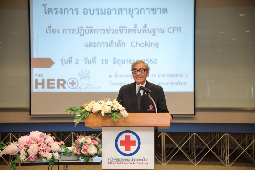 นายเตช บุนนาค ผู้ช่วยเลขาธิการสภากาชาดไทย ฝ่ายบริหาร เป็นประธานในพิธีเปิดการอบรมอาสายุวกาชาดเรื่องการปฏิบัติการช่วยชีวิตขั้นพื้นฐาน (CPR) และการสำลัก (Choking) ณ ห้องประชุมชั้น 15 อาคารจอดรถ 3 โรงพยาบาลจุฬาลงกรณ์ สภากาชาดไทย เมื่อวันที่ 18 มิถุนายน 2562
