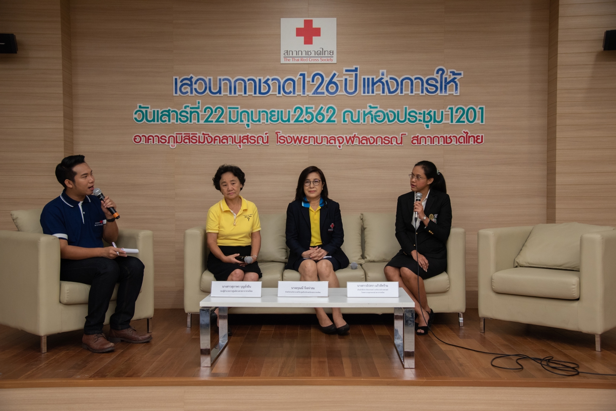 วันที่ 22 มิถุนายน 2562 เวลา 09.30 น. นายสวนิต คงสิริ ผู้ช่วยเลขาธิการสภากาชาดไทย ฝ่ายวิเทศสัมพันธ์ เป็นประธานเปิดงาน “เสวนากาชาด 126 ปี แห่งการให้” โดยมี นางสาวกรองทอง เพ็ชรวงศ์ ผู้อำนวยการสำนักสารนิเทศและสื่อสารองค์กร สำนักงานบริหาร สภากาชาดไทย และผู้ทรงคุณวุฒิจากหน่วยงานต่างๆ ของสภากาชาดไทย ได้แก่ ศูนย์รับบริจาคอวัยวะสภากาชาดไทย ศูนย์ดวงตาสภากาชาดไทย ศูนย์บริการโลหิตแห่งชาติสภากาชาดไทย สำนักงานบรรเทาทุกข์และประชานามัยพิทักษ์สภากาชาดไทย และฝ่ายกายวิภาคศาสตร์ โรงพยาบาลจุฬาลงกรณ์ สภากาชาดไทย รวมถึงประชาชน อาสาสมัคร และจิตอาสา เข้าร่วมงานเสวนาในครั้งนี้ ณ ห้องประชุม 1201 ชั้น 12 โซน B อาคาร ภูมิสิริมังคลานุสรณ์ โรงพยาบาลจุฬาลงกรณ์ สภากาชาดไทย