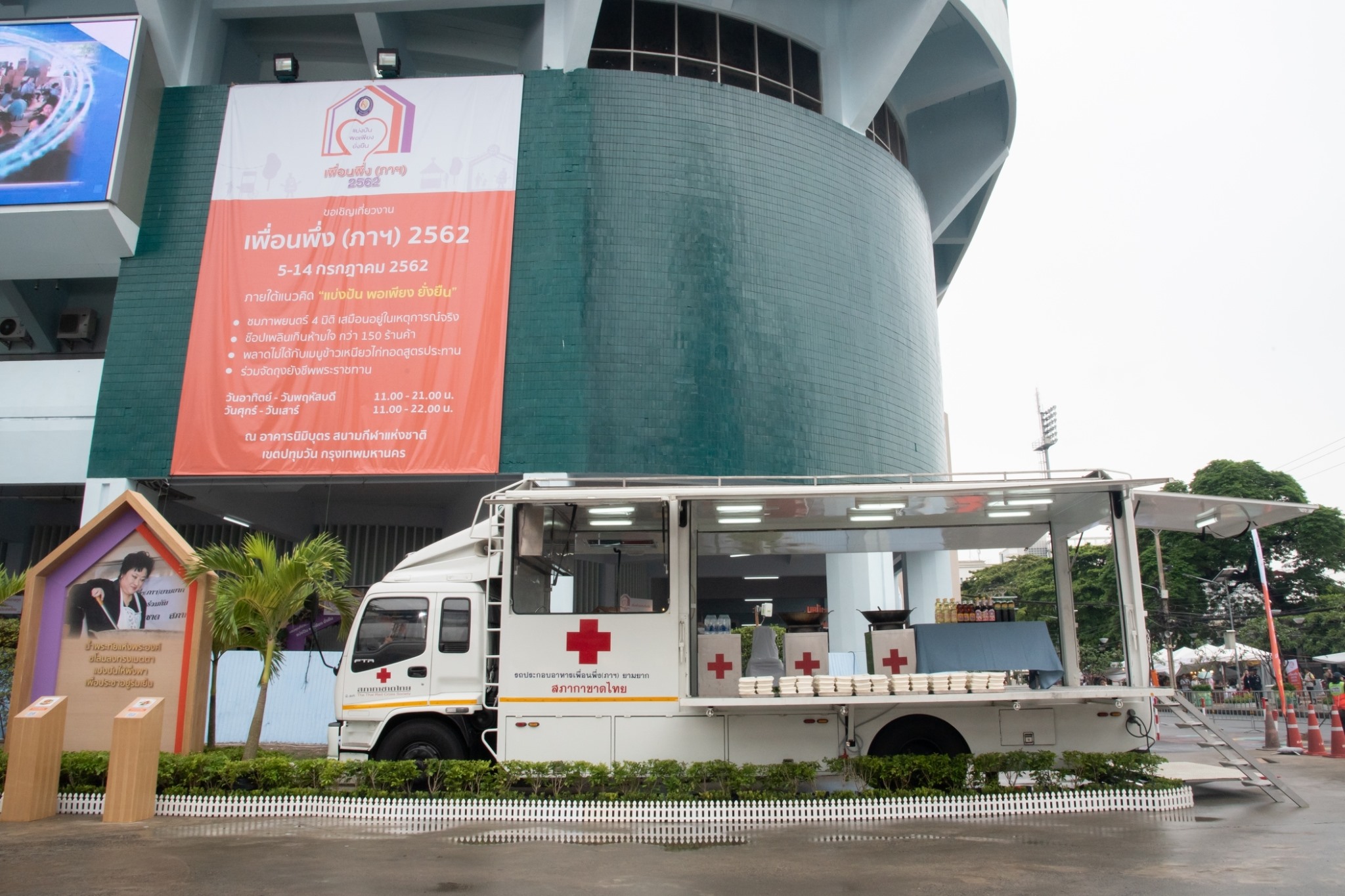 มูลนิธิอาสาเพื่อนพึ่ง (ภาฯ) ยามยาก สภากาชาดไทย จัดงาน “เพื่อนพึ่ง (ภาฯ) 2562” ภายใต้แนวคิด “แบ่งปัน พอเพียง ยั่งยืน” ระหว่างวันที่ 5-14 กรกฎาคม 2562 ตั้งแต่เวลา 11.00 – 21.00 น. ณ อาคารกีฬานิมิบุตร สนามกีฬาแห่งชาติ รายได้จากการจัดงานสมทบมูลนิธิอาสาเพื่อนพึ่ง (ภาฯ) ยามยาก สภากาชาดไทย เพื่อใช้ในการช่วยเหลือ ฟื้นฟู ผู้ที่ได้รับความทุกข์ยากจากอุทกภัย