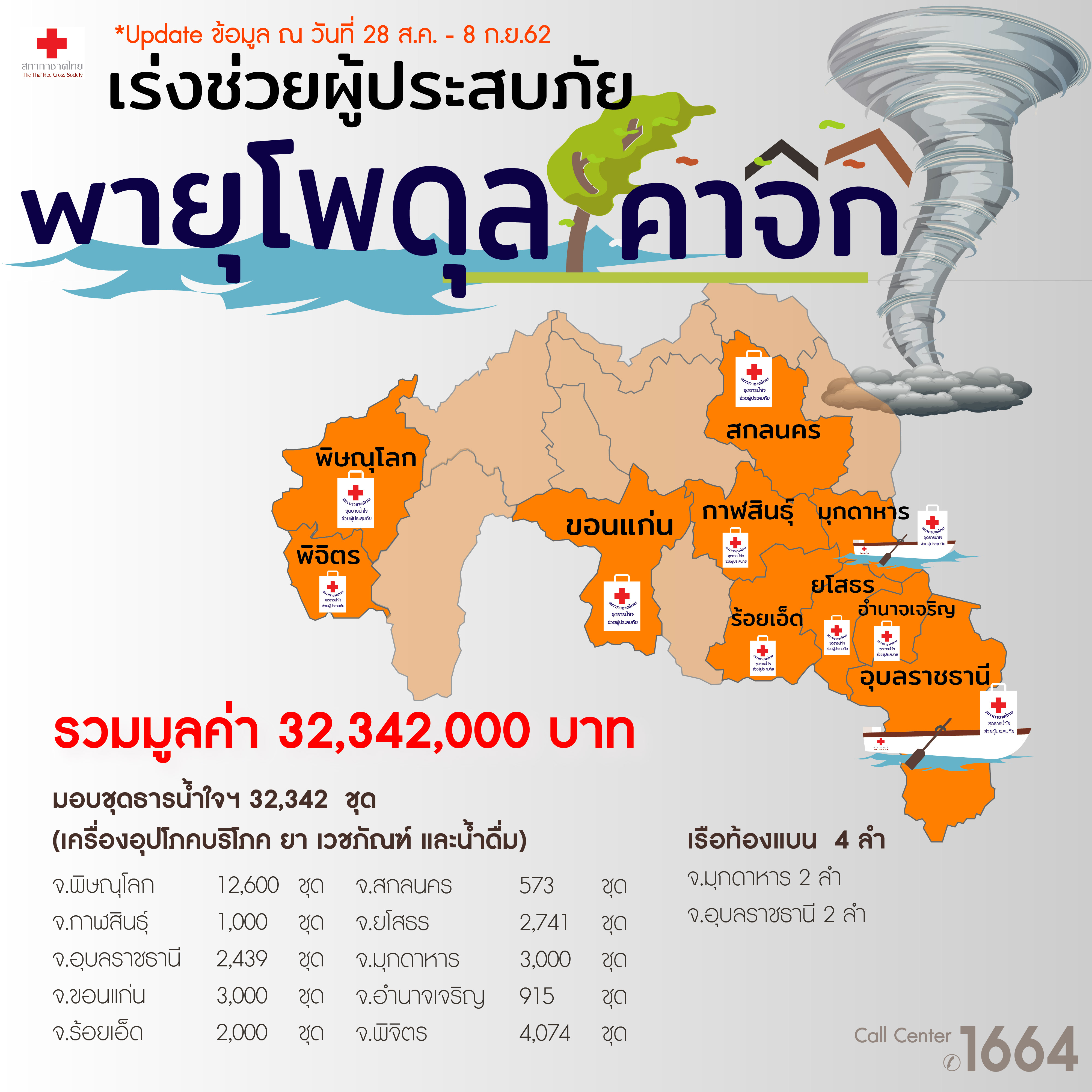 - มอบชุดธารน้ำใจฯ 32,342 ชุด รวมมูลค่า 32,342,000 บาท แยกเป็น