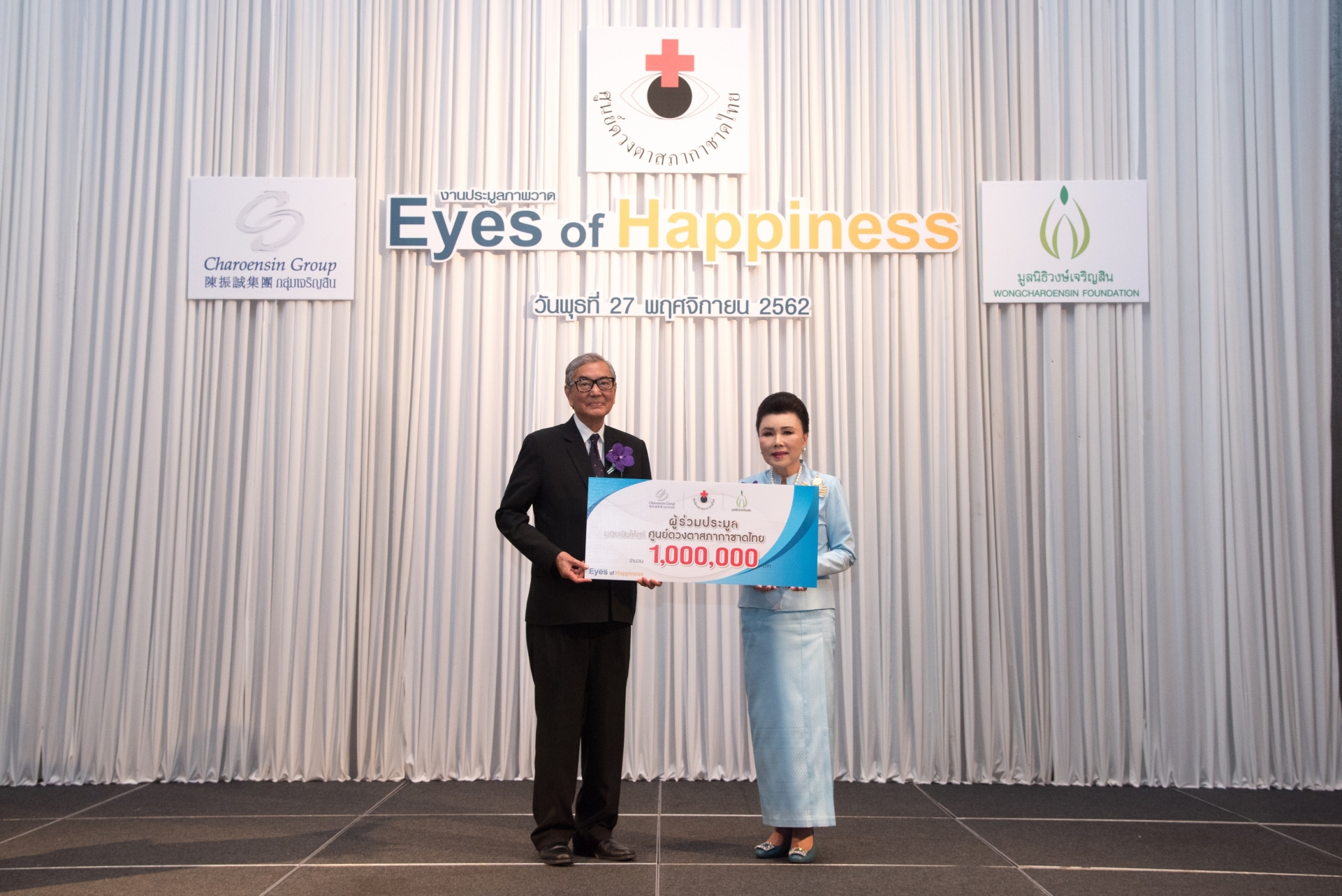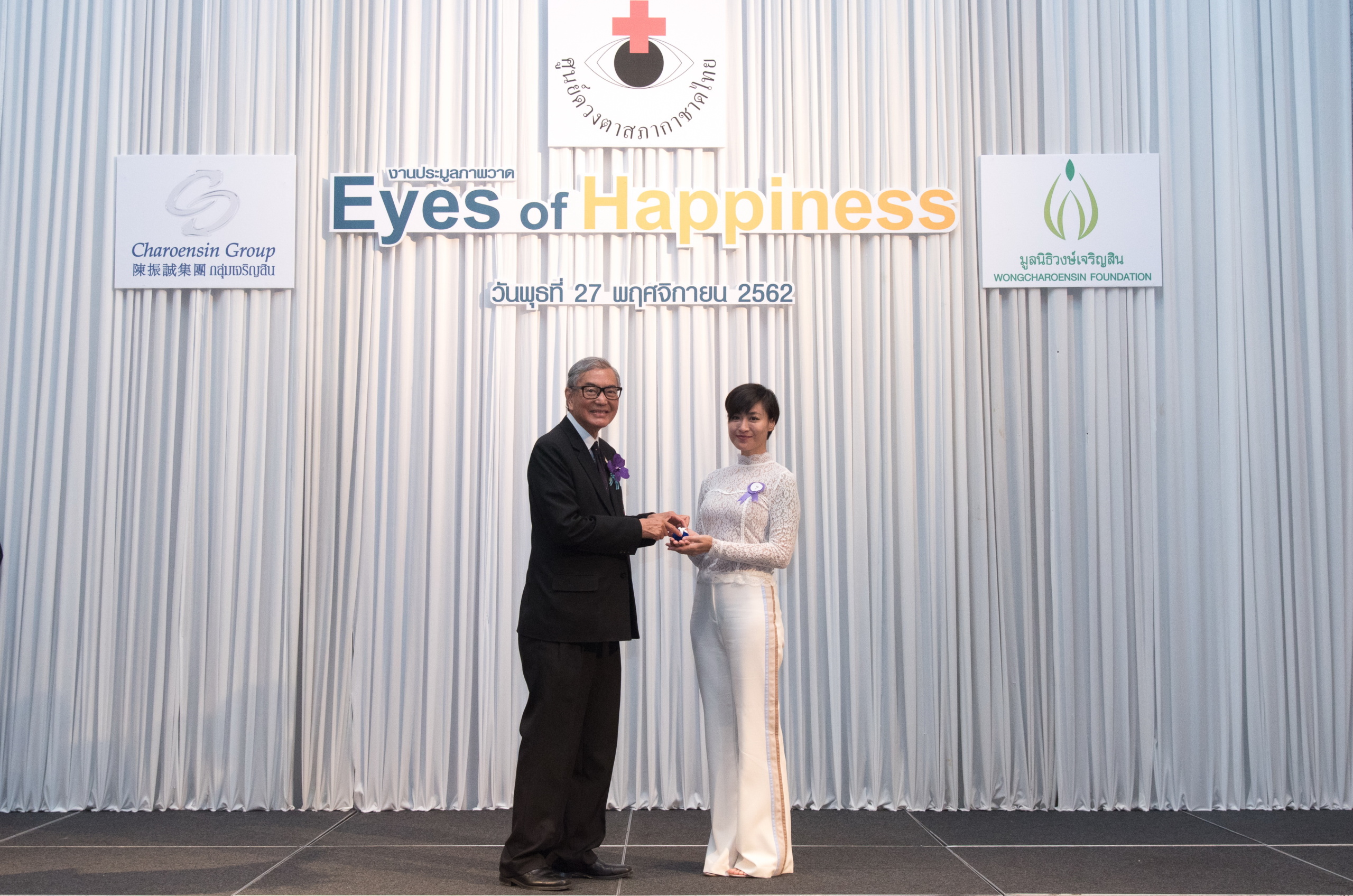 คณะอนุกรรมการประชาสัมพันธ์ศูนย์ดวงตาสภากาชาดไทย ชุดที่ 25 และมูลนิธิวงษ์เจริญสิน ได้ตระหนักถึงความสำคัญของการดำเนินงานตามพันธกิจของศูนย์ดวงตาสภากาชาดไทย จึงจัดโครงการ Eyes of Happiness ขึ้น ภายใต้แนวคิด “ความสุขจากการได้เห็นและถ่ายทอดความสุขนั้นออกเป็นภาพวาดรูปแบบต่างๆ นับเป็นความสุขที่ประเมินค่ามิได้ และหากได้มีการส่งต่อความสุขดังกล่าวไปยังผู้ไม่สามารถมองเห็นย่อมเป็นกุศลอันยิ่งใหญ่” โดยเชิญชวนให้ศิลปิน ดารา และผู้มีชื่อเสียงในสังคมที่มีความสามารถและชื่นชอบในการวาดภาพได้มีส่วนร่วมในการส่งต่อความสุขจากการมองเห็น และเป็นพลังขับเคลื่อนการทำงานของศูนย์ดวงตาสภากาชาดไทย ด้วยการมอบภาพวาดของตนในหัวข้อ “Eyes of Happiness” หรือ “ความสุขจากการมองเห็น” ให้กับศูนย์ดวงตาสภากาชาดไทย เพื่อนำไปประมูลขายให้กับประชาชนที่มีความประสงค์จะได้ภาพเขียนของศิลปิน ดารา และบุคคลที่ชื่นชอบ ตลอดจนให้ประชาชนผู้มีจิตศรัทธาได้มีส่วนร่วมในการบริจาคเงิน เพื่อสนับสนุนการดำเนินกิจการของศูนย์ดวงตาสภากาชาดไทยโดยมีภาพวาดร่วมในการประมูลครั้งนี้ จำนวน 74 ภาพ และศูนย์ดวงตาสภากาชาดไทย ได้รับมอบเงินจากโครงการฯ เป็นเงินจำนวน 1,000,000 บาท (หนึ่งล้านบาท)