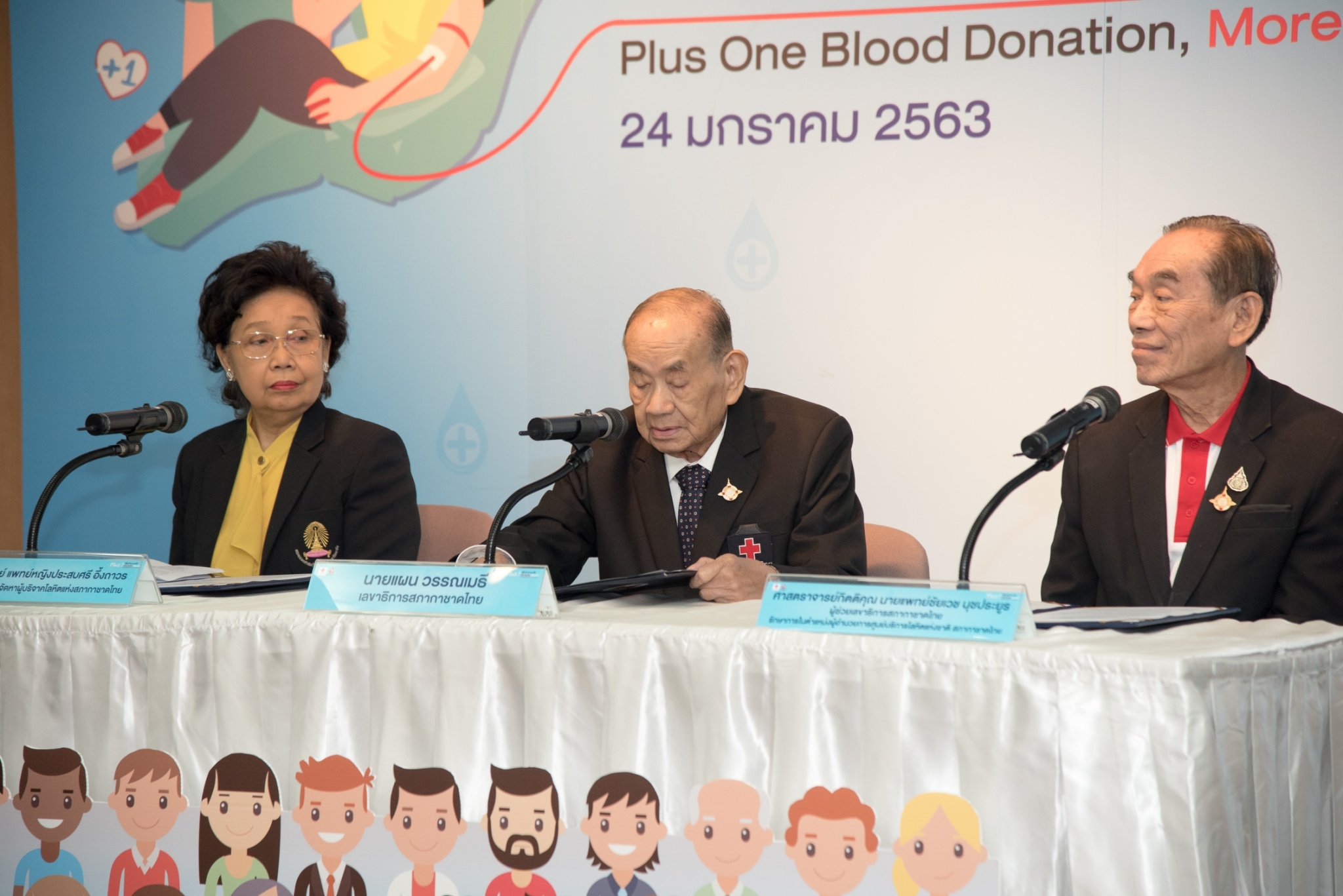 วันที่ 24 มกราคม 2563 เวลา 10.00 น. นายแผน วรรณเมธี เลขาธิการสภากาชาดไทย เป็นประธานแถลงข่าวการจัดโครงการ “Plus 1 เพิ่มจำนวนครั้ง เพิ่มโลหิต เพิ่มชีวิต” (Plus One Blood Donation, More Blood More Lives) เป็นโครงการหลักประจำปี 2563 เพื่อสร้างความตระหนักถึงความสำคัญ และความจำเป็นของโลหิตด้วยการเพิ่มจำนวนครั้งการบริจาคโลหิต ร่วมด้วย รองศาสตราจารย์แพทย์หญิงประสบศรี อึ้งถาวร ประธานคณะกรรมการจัดหาและส่งเสริมผู้ให้โลหิตแห่งสภากาชาดไทย และศาสตราจารย์กิตติคุณนายแพทย์ชัยเวช นุชประยูร ผู้ช่วยเลขาธิการสภากาชาดไทย และรักษาการในตำแหน่งผู้อำนวยการศูนย์บริการโลหิตแห่งชาติ สภากาชาดไทย พร้อมด้วยศิลปิน ดารา ร่วมรณรงค์เชิญชวนบริจาคโลหิตในโครงการ ณ ห้องจุมภฏ ชั้น 9 อาคารเฉลิมพระเกียรติบรมราชินีนาถ ศูนย์บริการโลหิตแห่งชาติ