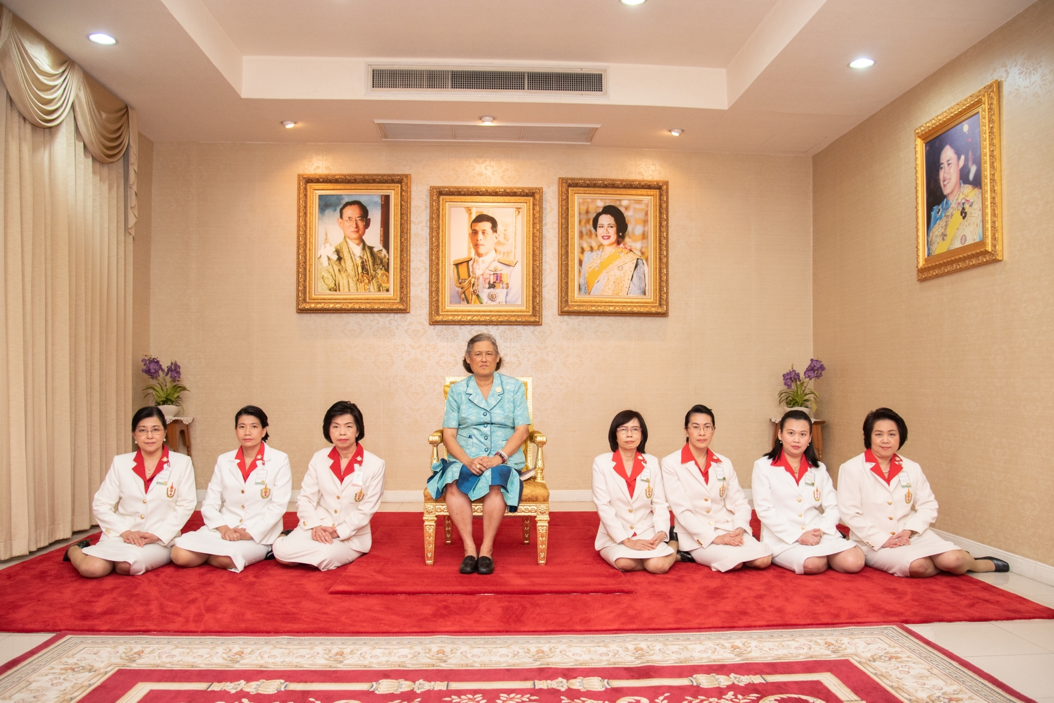 จากนั้น เสด็จเข้าห้องรับรอง ชั้นล่าง อาคารเทิดพระเกียรติฯ พระราชทานพระราชวโรกาสให้คณะผู้บริหารสถาบันการพยาบาลฯ เข้าเฝ้าถวายตัว เนื่องในโอกาสที่ทรงพระกรุณาโปรดเกล้าฯ ให้ดำรงตำแหน่งอธิการบดี และแต่งตั้งให้ดำรงตำแหน่งรองอธิการบดี และผู้ช่วยอธิการบดี