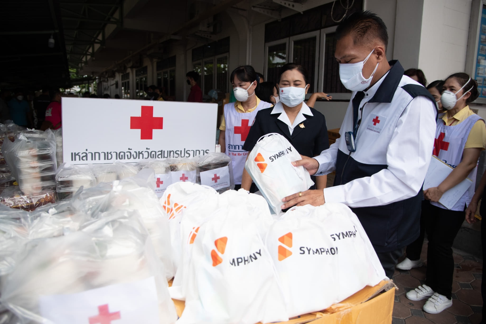 6 กรกฎาคม 2564 สภากาชาดไทย นำโดย สำนักงานบรรเทาทุกข์และประชานามัยพิทักษ์ สถานีกาชาดที่ 5 สวางคนิวาส ได้มอบชุดสุขอนามัย (Hygiene Kits) จำนวน 300 ชุด สำนักงานบริหารกิจการเหล่ากาชาดและสำนักงานเหล่ากาชาดจังหวัดสมุทรปราการได้มอบข้าวกล่อง จำนวน 300 กล่อง พร้อมมอบเงิน จำนวน 20,000 บาท แก่ญาติผู้เสียชีวิตในเหตุการณ์ครั้งนี้ด้วย ณ ศูนย์พักพิง อบต. บางพลีใหญ่ และศูนย์พักพิงโรงเรียนวัดบางพลีใหญ่กลาง เพื่อบรรเทาความเดือดร้อนเบื้องต้นและเร่งพิจารณาดำเนินการช่วยเหลือต่อไป