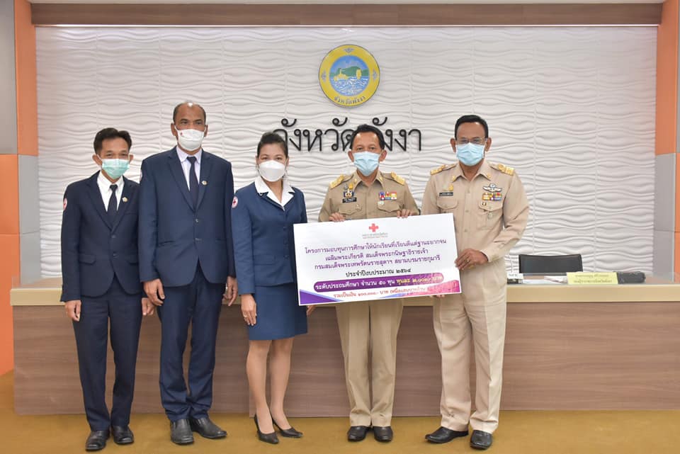 วันที่ 30 สิงหาคม 2564 นางวิภาดา ทิพญพงศ์ธาดา นายกเหล่ากาชาดจังหวัดพังงา มอบหมายให้นางจีรนันท์ สุทพัฒน์แก้ว รองนายกเหล่ากาชาดจังหวัดพังงา และคณะกรรมการเหล่ากาชาดจังหวัดพังงา มอบทุนการศึกษาแก่นักเรียนเรียนดีแต่ขาดแคลนทุนทรัพย์ โดยมี นายจำเริญ ทิพญพงศ์ธาดา ผู้ว่าราชการจังหวัดพังงา เป็นผู้มอบทุนการศึกษานักเรียน เรียนดีแต่ฐานะยากจน เฉลิมพระเกียรติสมเด็จพระกนิษฐาธิราชเจ้า กรมสมเด็จพระเทพรัตนราชสุดาฯ สยามบรมราชกุมารี ประจำปีงบประมาณ 2564 ณ ห้องประชุมเทพทาโร ศาลากลางจังหวัดพังงา